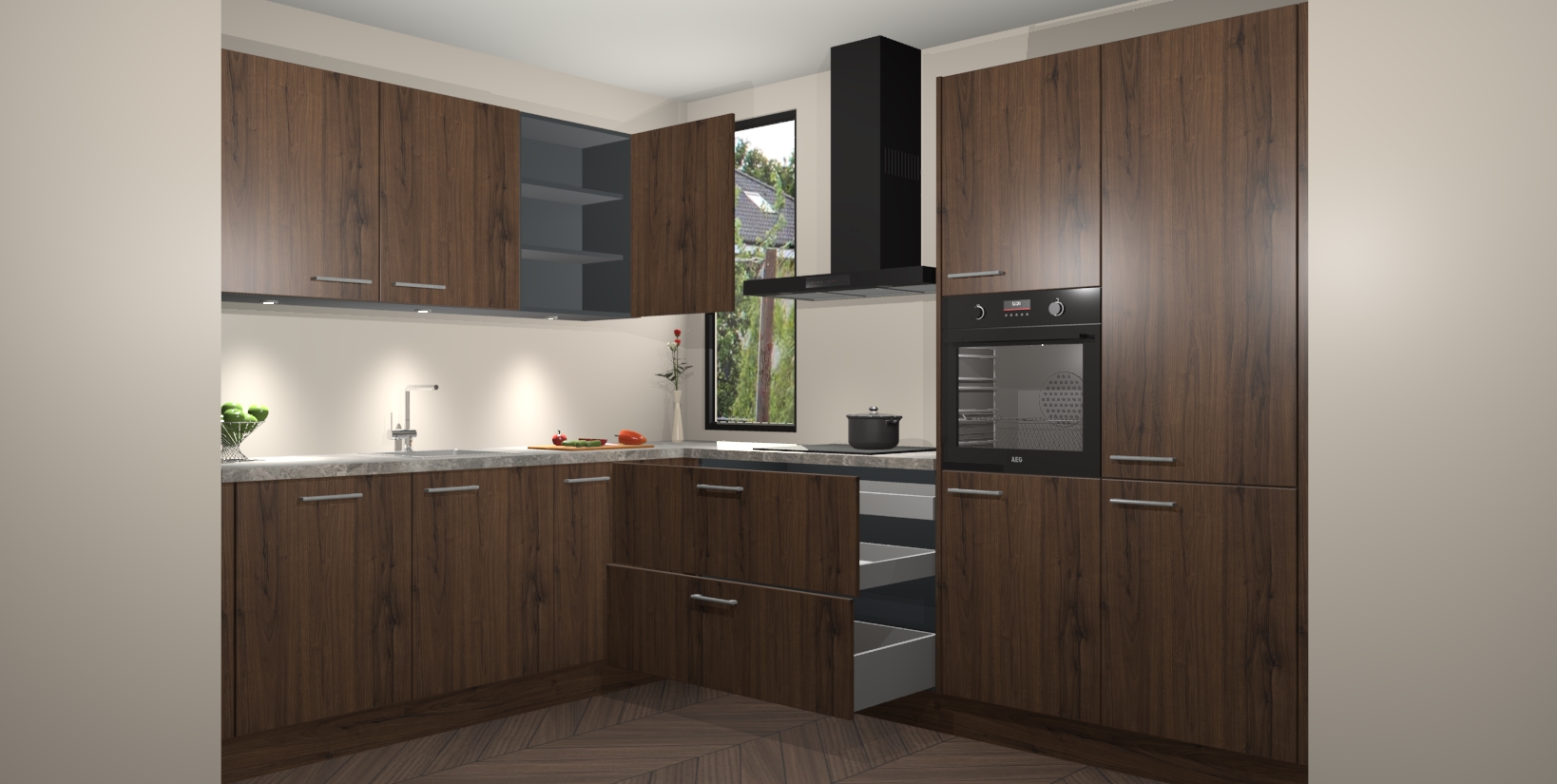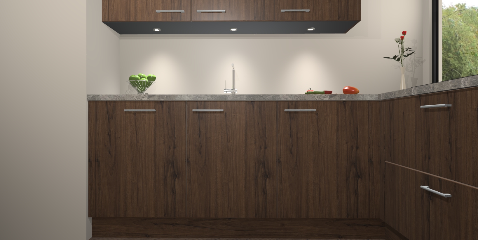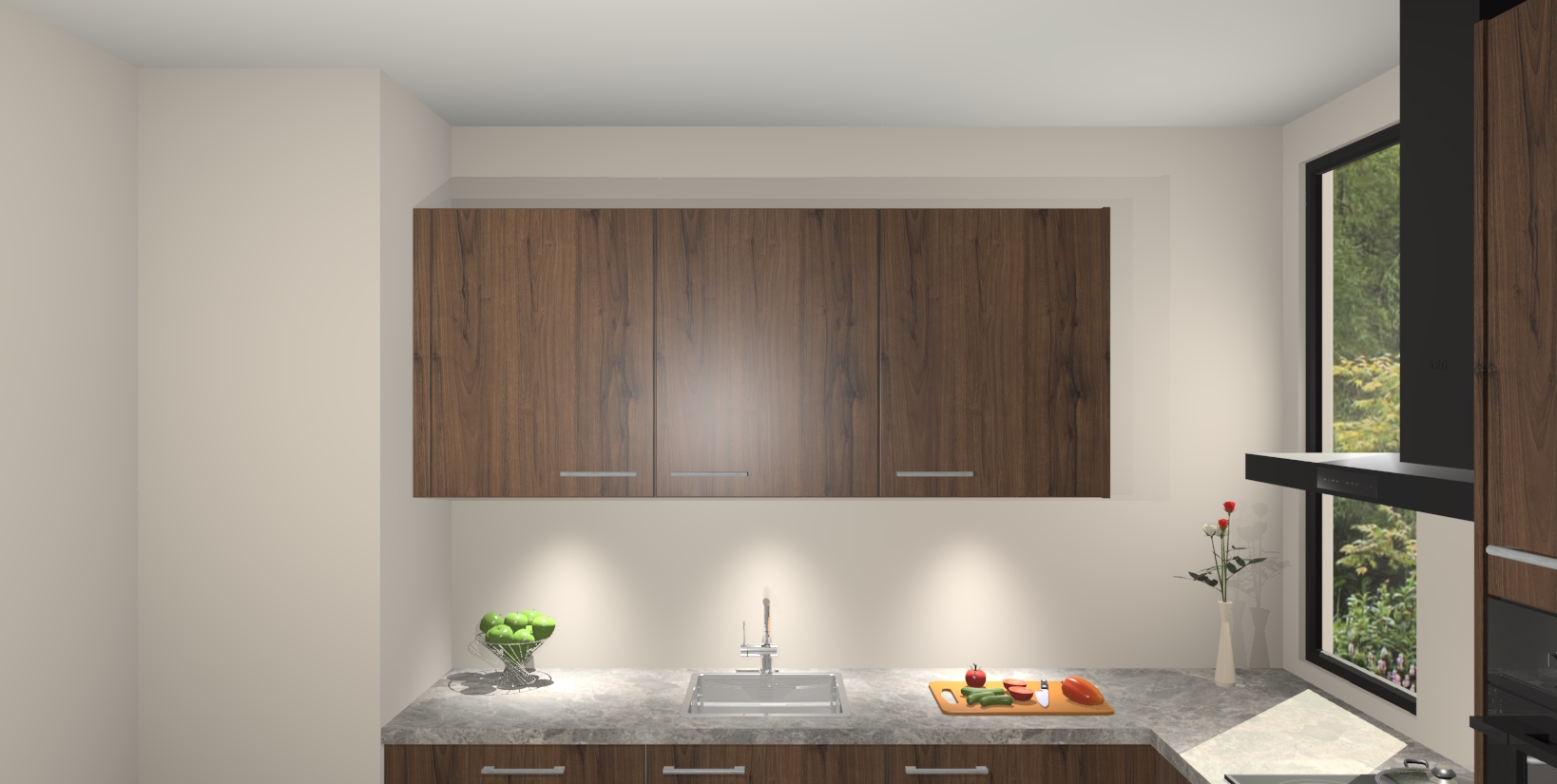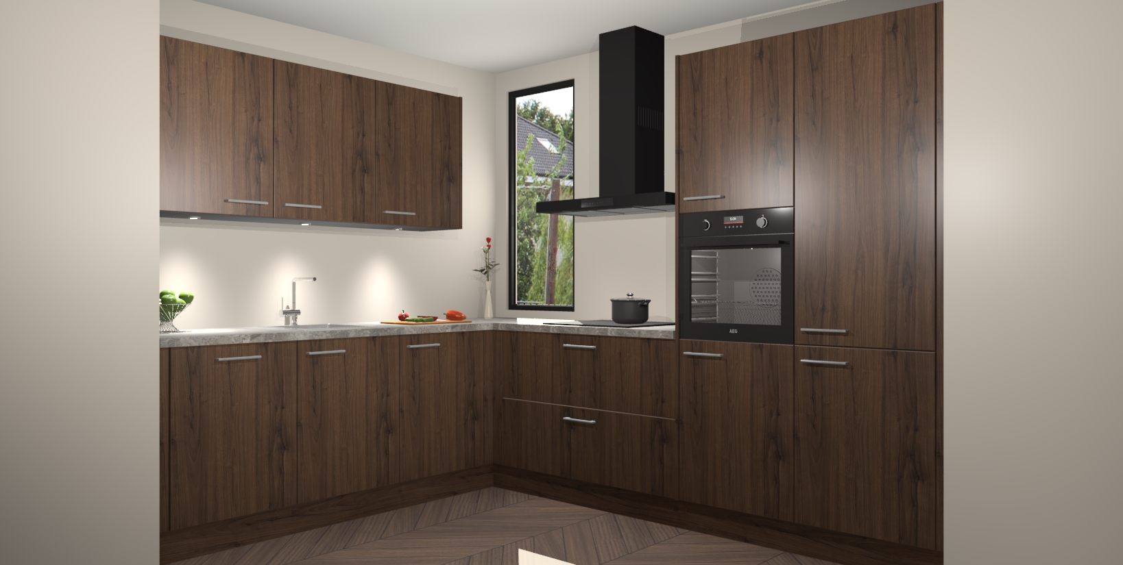 Maak u keuken elegant en verfijnd met de noten keuken Buenos Aires! Dit prachtige stuk heeft warme kleuren voor een strak, modern gevoel dat u de adem zal benemen. De handgrepen heeft net als de binnenkant van de kasten dezelfde noten afwerking, waardoor alles er nog beter uitziet.
