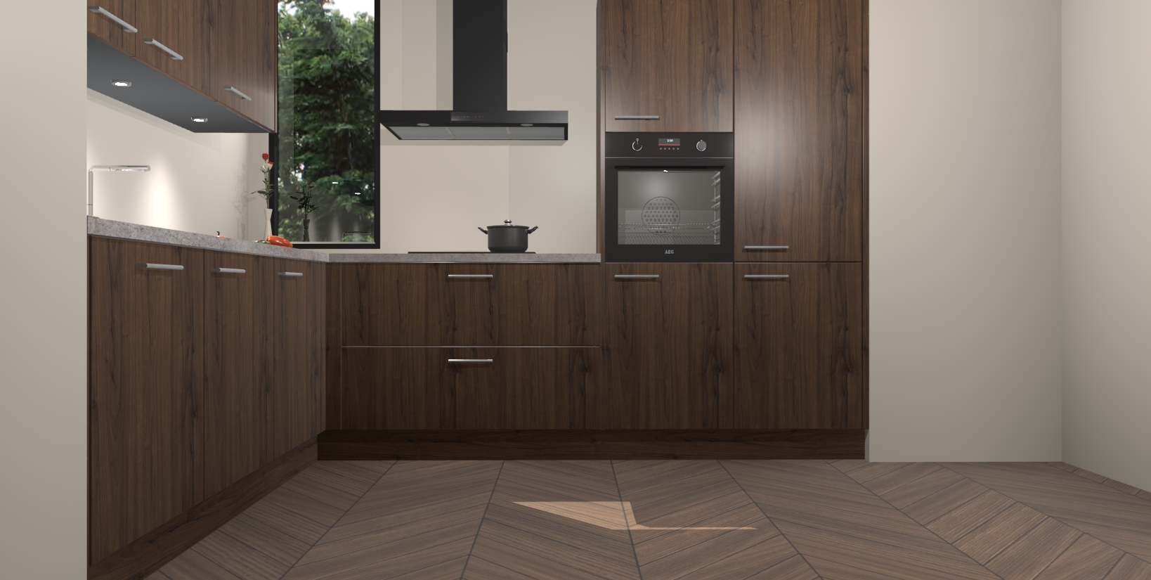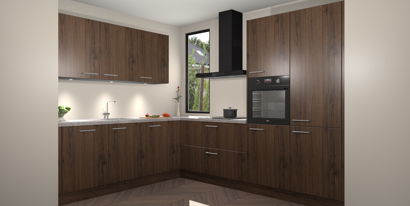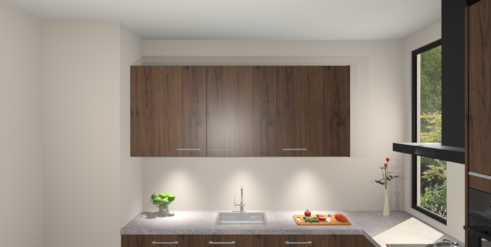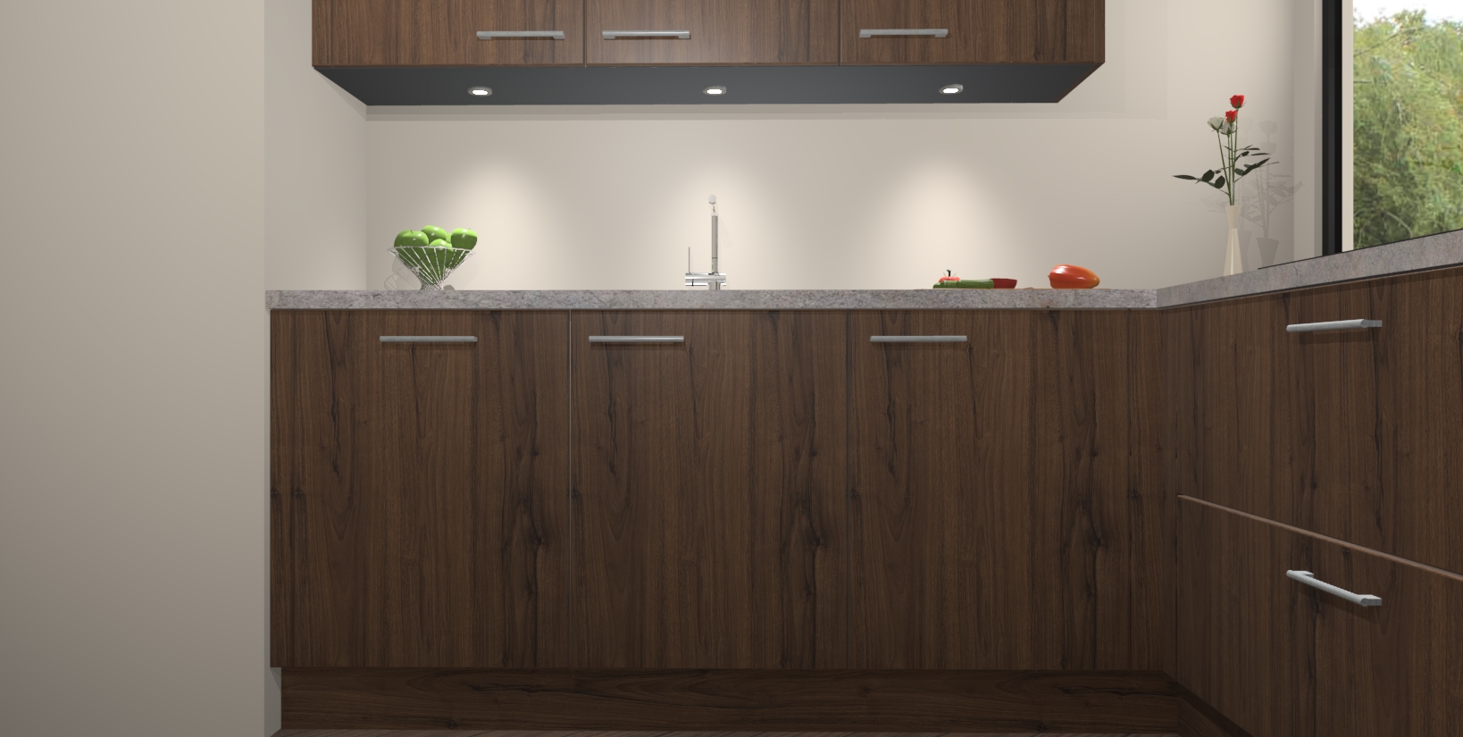 Maak u keuken elegant en verfijnd met de noten keuken Buenos Aires! Dit prachtige stuk heeft warme kleuren voor een strak, modern gevoel dat u de adem zal benemen. De handgrepen heeft net als de binnenkant van de kasten dezelfde noten afwerking, waardoor alles er nog beter uitziet.