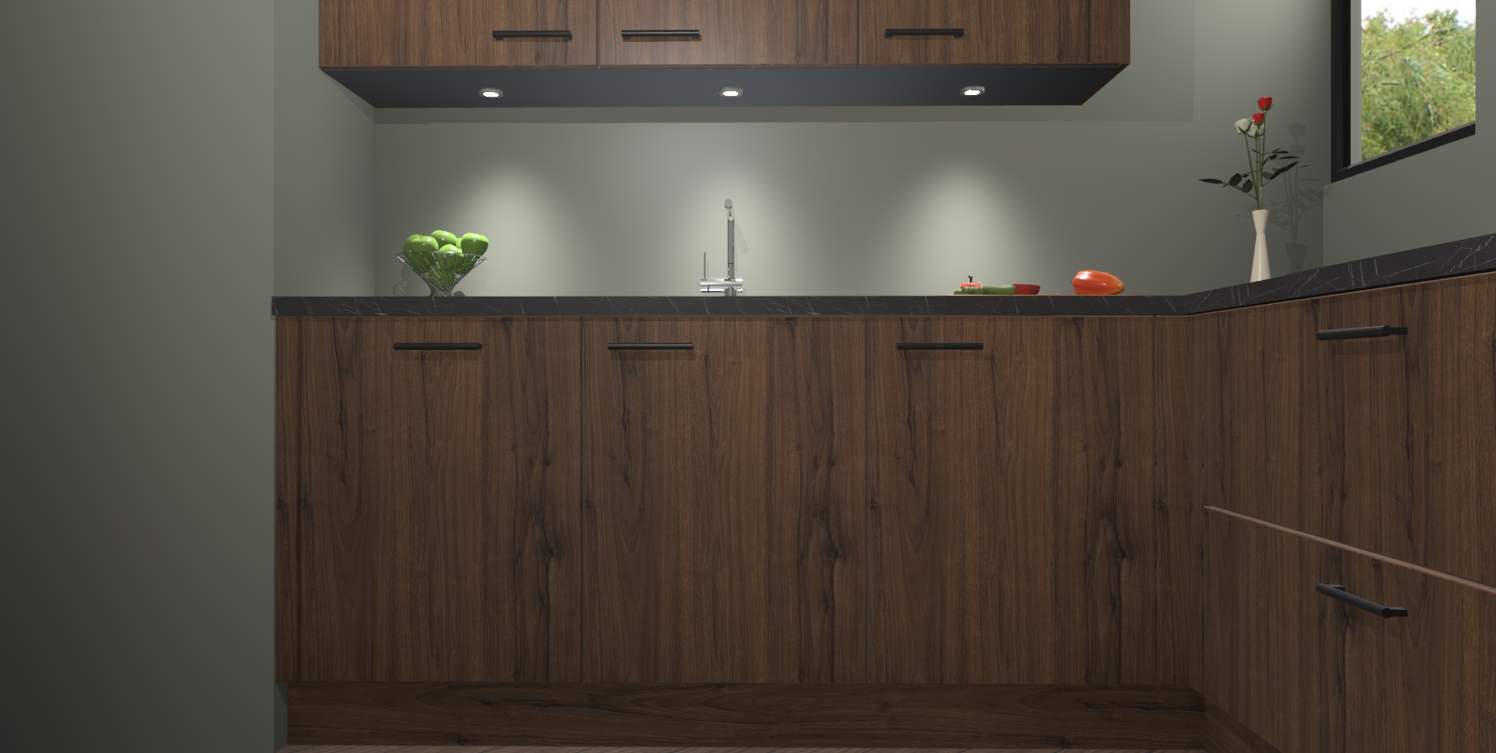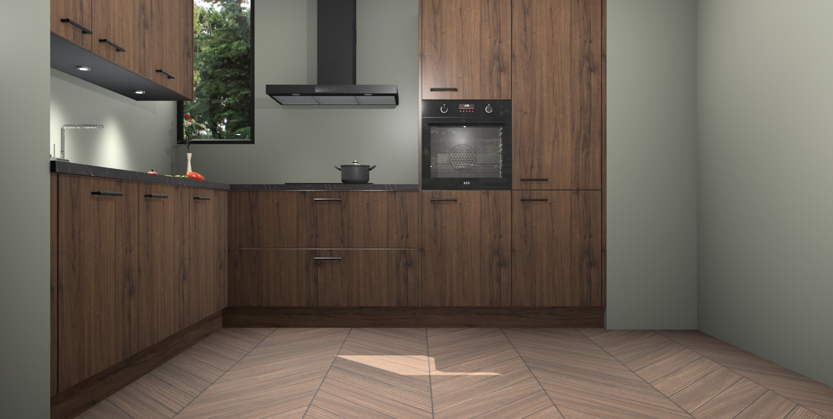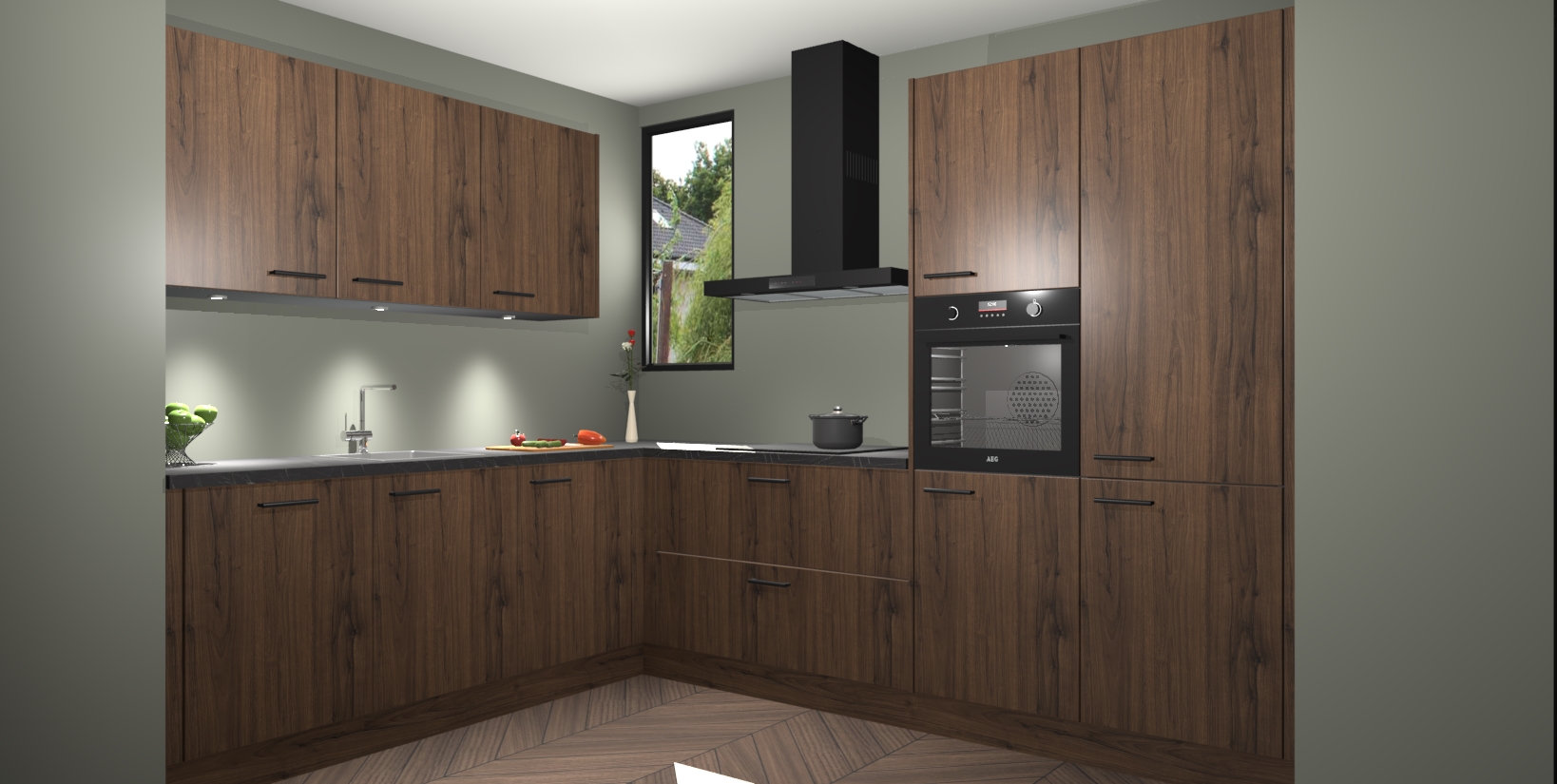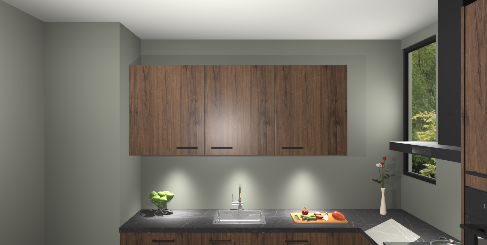 Maak u keuken elegant en verfijnd met de noten keuken Buenos Aires! Dit prachtige stuk heeft warme kleuren voor een strak, modern gevoel dat u de adem zal benemen. De handgrepen heeft net als de binnenkant van de kasten dezelfde noten afwerking, waardoor alles er nog beter uitziet.