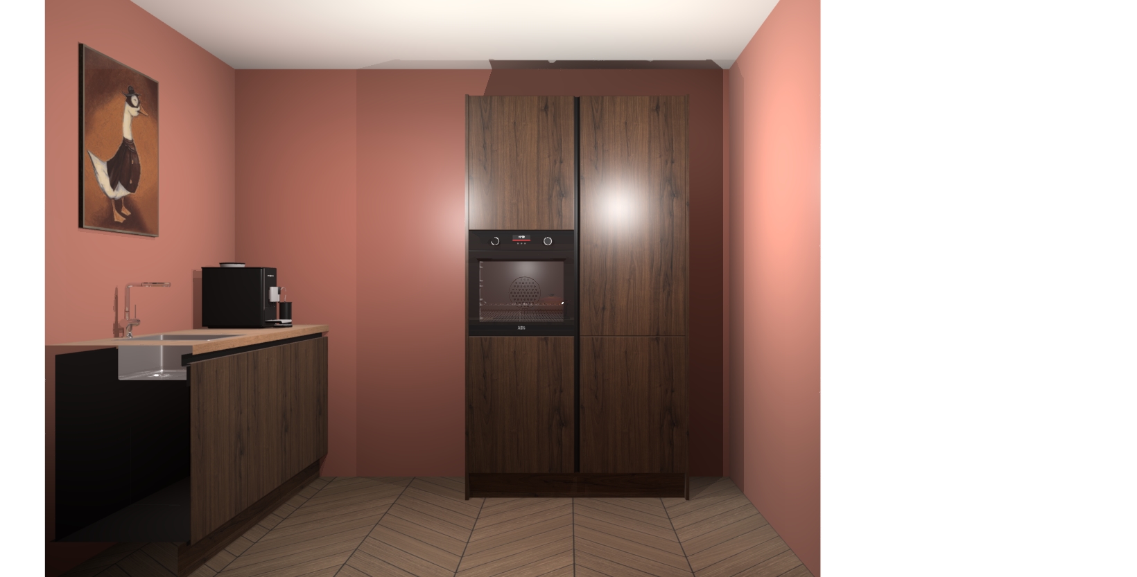 Met een modern, tijdloos design en ruime opslagruimte, zult u zich in no-time thuis voelen in uw nieuwe keuken. Uw leven wordt eenvoudiger met de soft-close deuren die voor het ultieme stille comfort zorgen - geen geluid dat u stoort terwijl u kookt. Ook is de keuken voorzien van 5 ingebouwde apparaten: een oven, inductie kookplaat, afzuigkap, vaatwasser en koelkast. Deze kunnen gemakkelijk na bestelling worden bijgewerkt naar AEG - waardoor uw luxe ervaring compleet is.