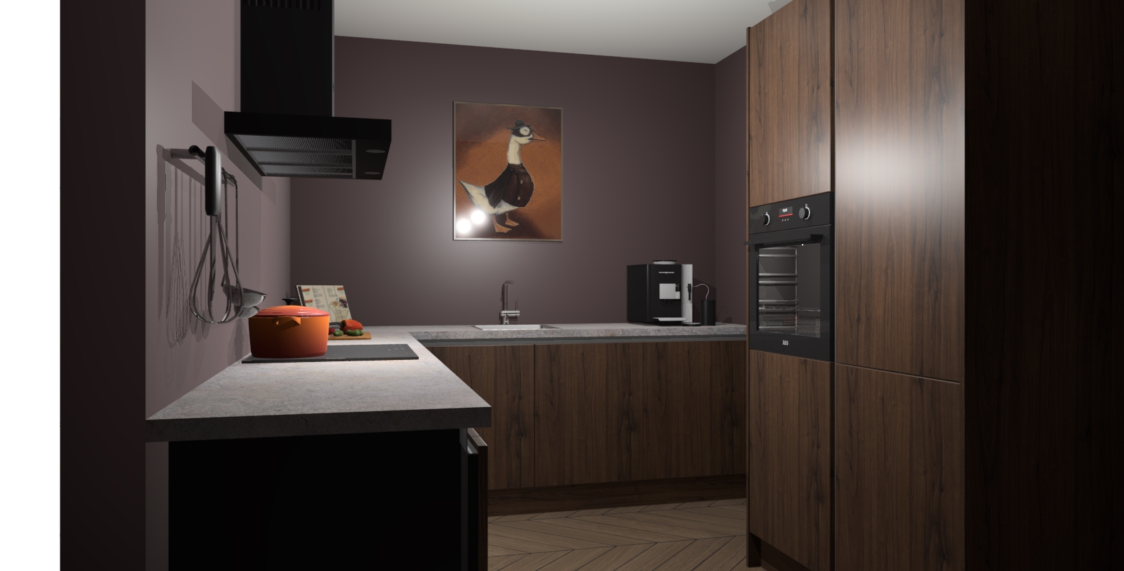 Met een modern, tijdloos design en ruime opslagruimte, zult u zich in no-time thuis voelen in uw nieuwe keuken. Uw leven wordt eenvoudiger met de soft-close deuren die voor het ultieme stille comfort zorgen - geen geluid dat u stoort terwijl u kookt. Ook is de keuken voorzien van 5 ingebouwde apparaten: een oven, inductie kookplaat, afzuigkap, vaatwasser en koelkast. Deze kunnen gemakkelijk na bestelling worden bijgewerkt naar AEG - waardoor uw luxe ervaring compleet is.