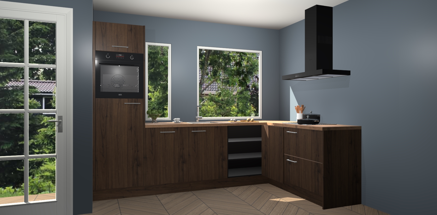 Deze complete keuken wordt geleverd met 5 inbouwapparaten: een oven, inductiekookplaat, afzuigkap, vaatwasser en koelkast. De toestellen kunnen na bestelling ook gemakkelijk worden opgewaardeerd naar AEG. Bovendien is elke deur in deze keuken voorzien van handige softclose technologie voor eenvoudig gebruik! Als een leuke toevoeging zit in deze keuken ook een carrousel, zo hoef je niet meer de hoek in duiken om iets te pakken.