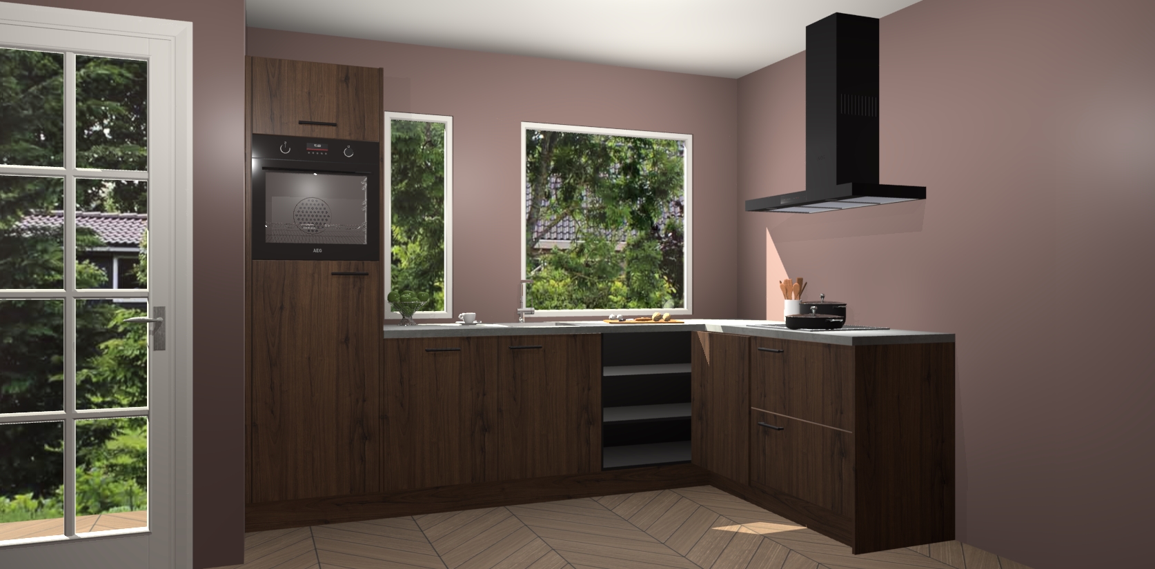 De noten keuken Cannes - de perfecte hoekkeuken voor elke ruimte! Onze combinatie van modern, tijdloos design en betrouwbare Duitse kwaliteit gecombineerd met een onverslaanbare prijs maken deze keuken een geweldige manier om uw huis te verbeteren en stijl toe te voegen.