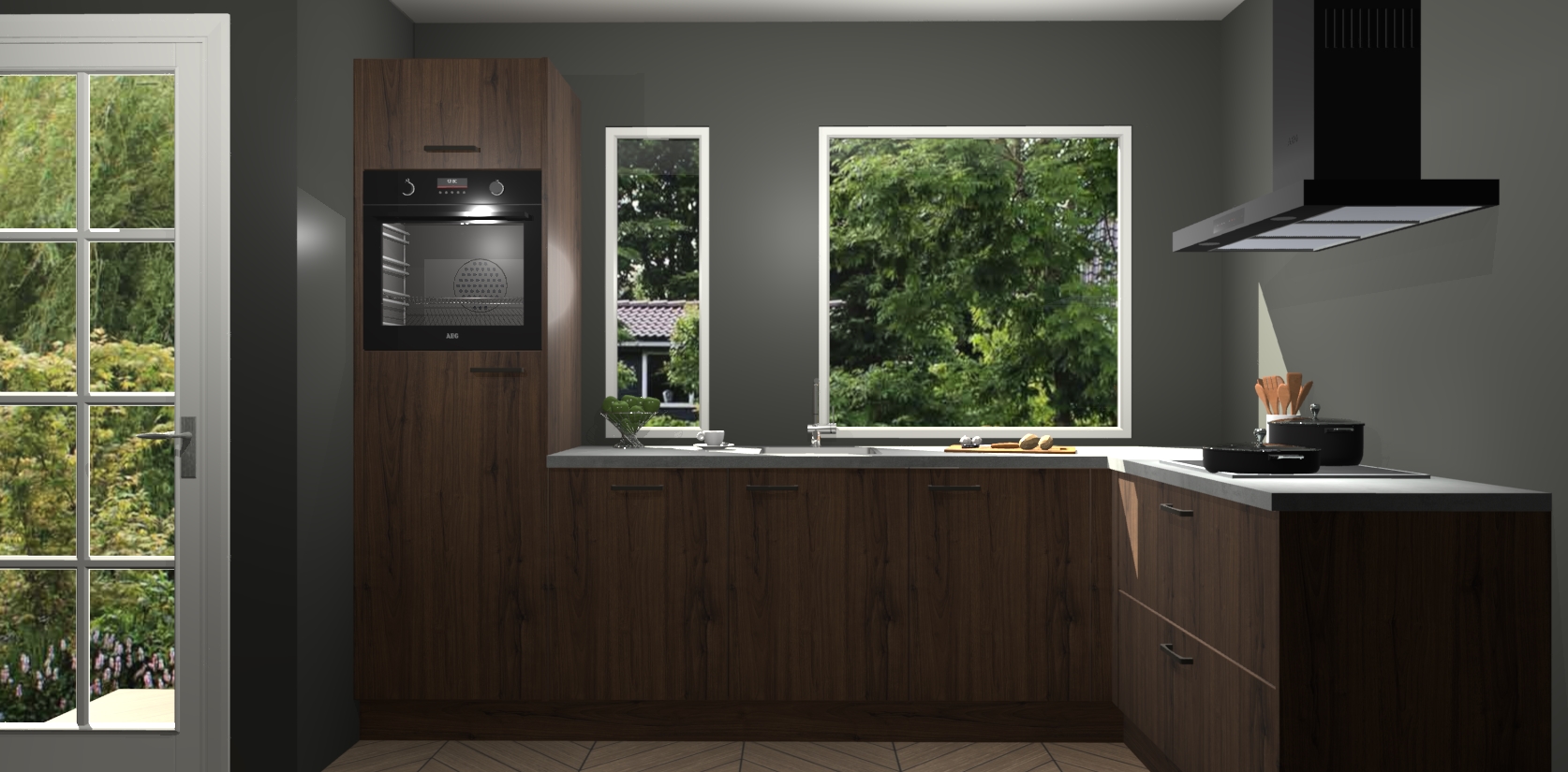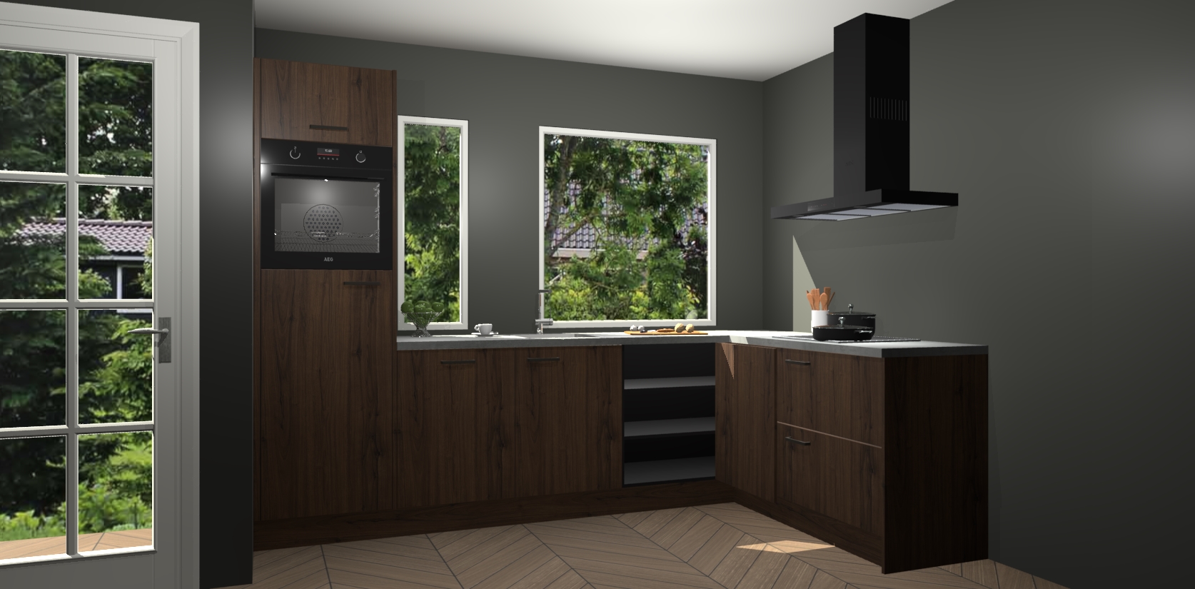 Deze complete keuken wordt geleverd met 5 inbouwapparaten: een oven, inductiekookplaat, afzuigkap, vaatwasser en koelkast.  De toestellen kunnen na bestelling ook gemakkelijk worden opgewaardeerd naar AEG. Bovendien is elke deur in deze keuken voorzien van handige softclose technologie voor eenvoudig gebruik! Als een leuke toevoeging zit in deze keuken ook een carrousel, zo hoef je niet meer de hoek in duiken om iets te pakken.