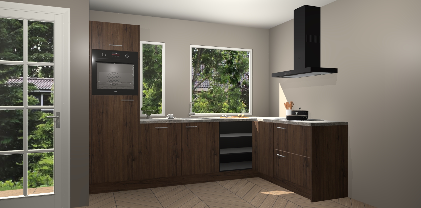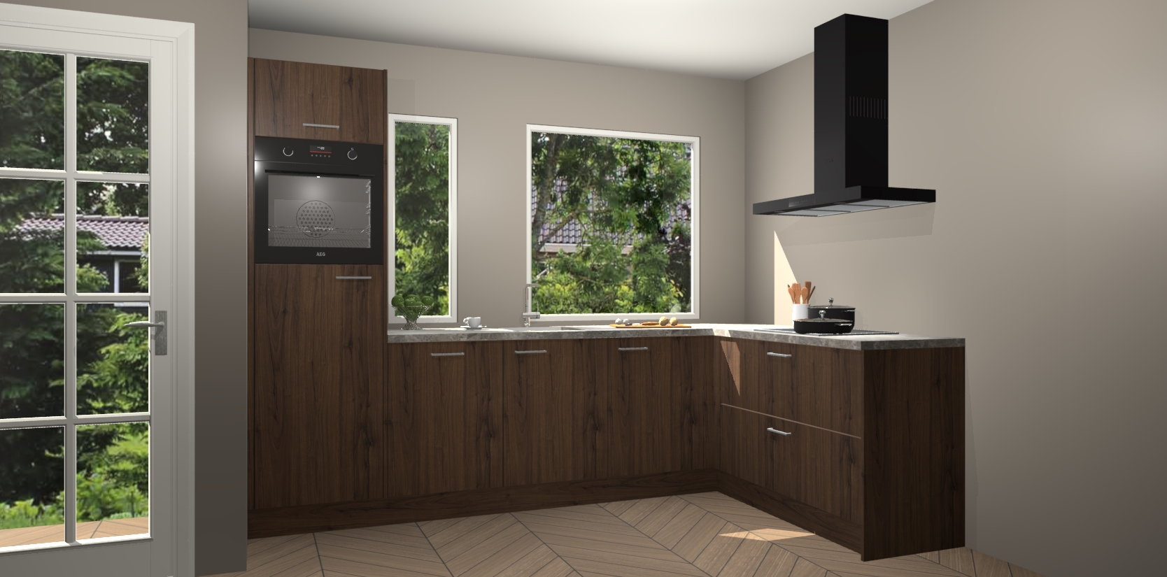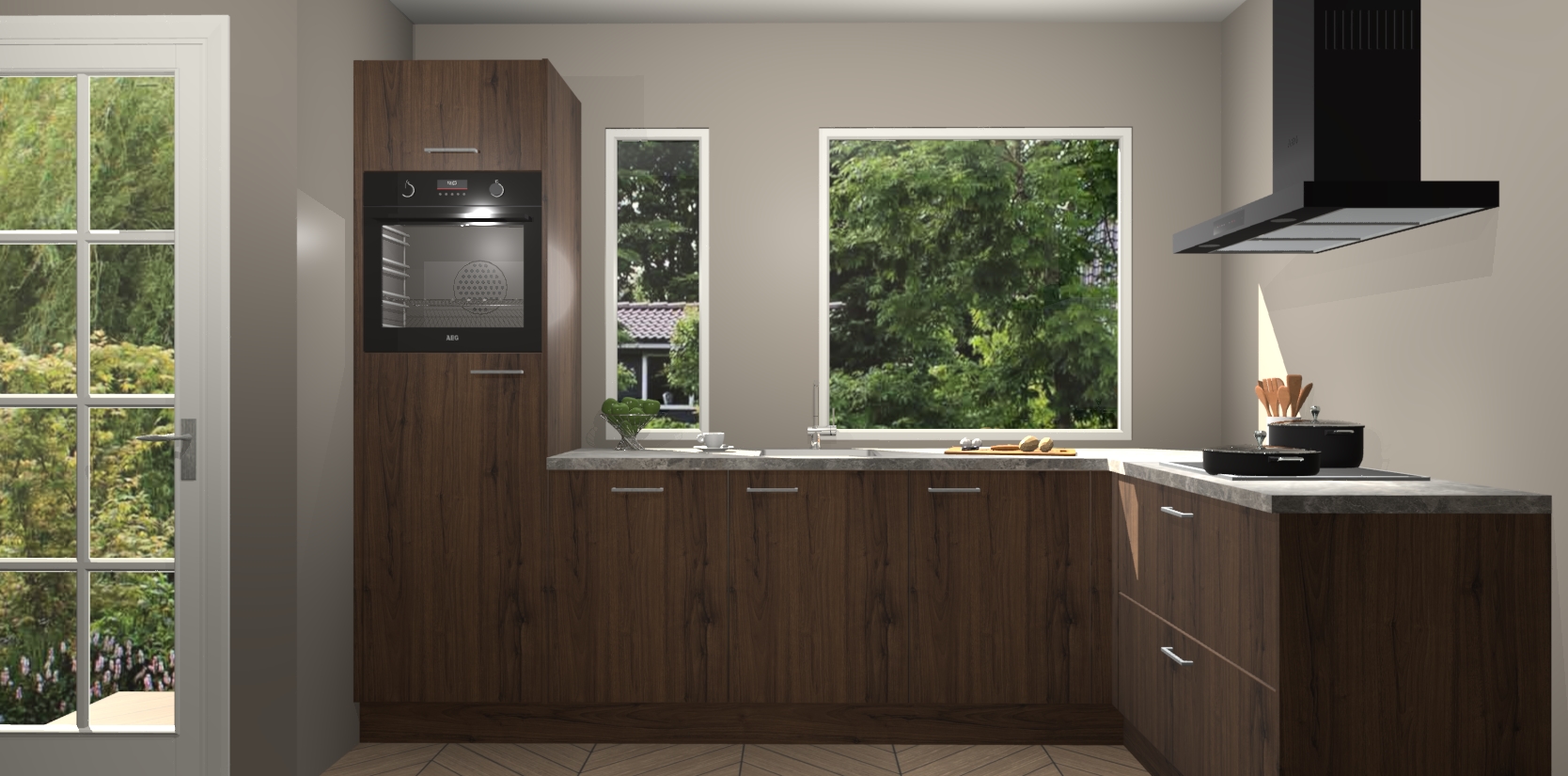 De noten keuken Cannes - de perfecte hoekkeuken voor elke ruimte! Onze combinatie van modern, tijdloos design en betrouwbare Duitse kwaliteit gecombineerd met een onverslaanbare prijs maken deze keuken een geweldige manier om uw huis te verbeteren en stijl toe te voegen.
