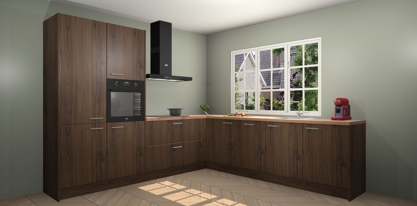 Welkom in de nieuwe wereld van een moderne keuken: de Noten keuken Casablanca! Met dit innovatieve keukendesign haalt u de natuur naar binnen. Neem plaats aan uw hout-look keuken en voel u verbonden met de prachtige Noten kleur. Zeer gebruiksvriendelijk, ervaring door prettige materialen en kleur die perfect aansluiten bij uw sfeerkeuze in huis.