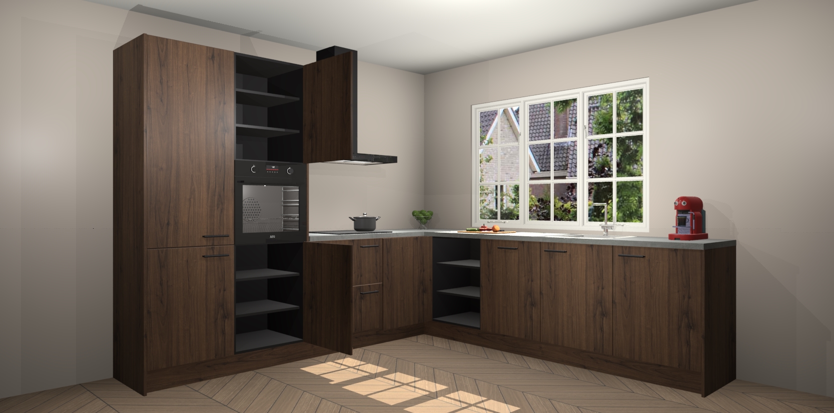 Welkom in de nieuwe wereld van een moderne keuken: de Noten keuken Casablanca! Met dit innovatieve keukendesign haalt u de natuur naar binnen. Neem plaats aan uw hout-look keuken en voel u verbonden met de prachtige Noten kleur. Zeer gebruiksvriendelijk, ervaring door prettige materialen en kleur die perfect aansluiten bij uw sfeerkeuze in huis.