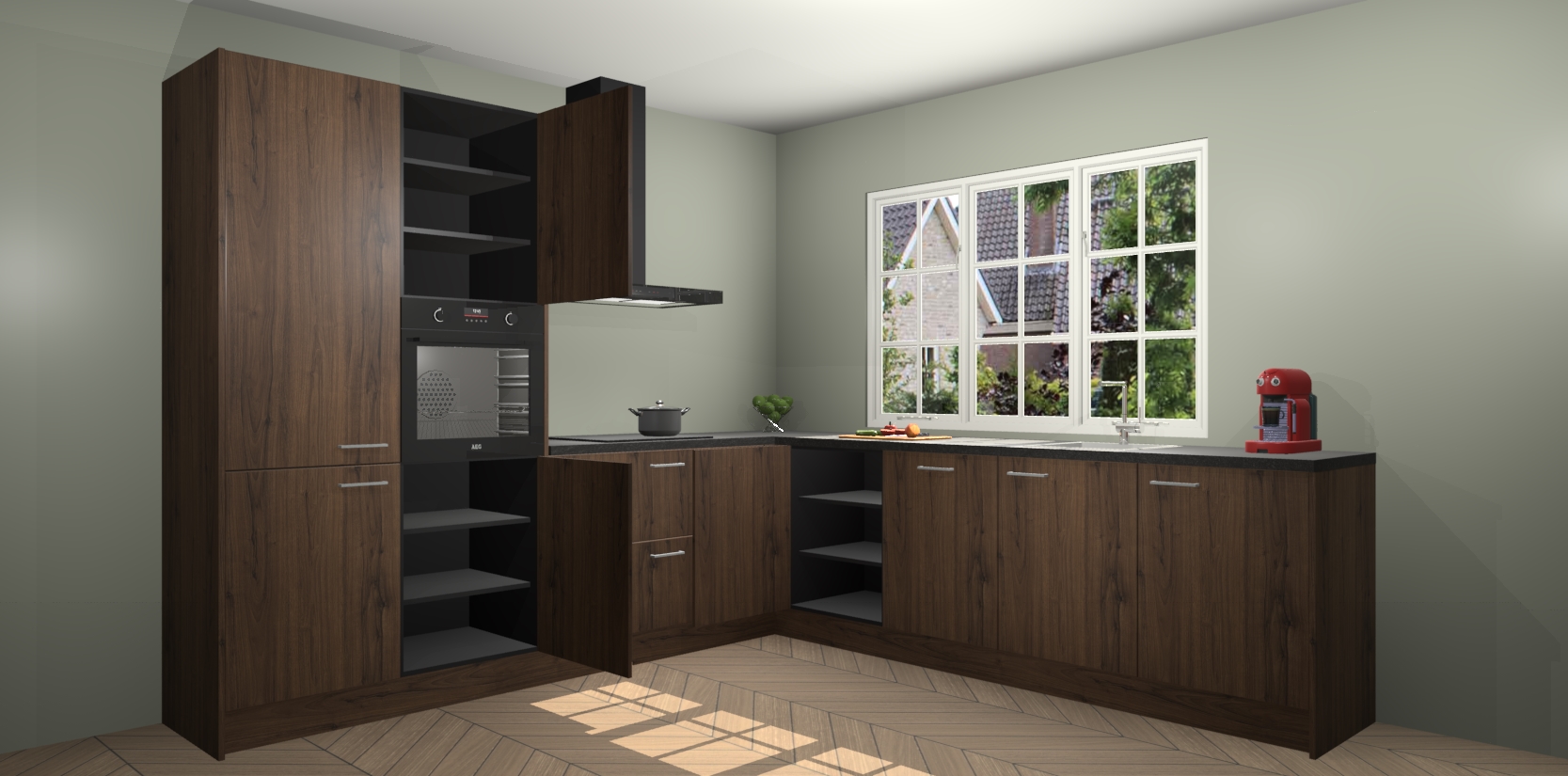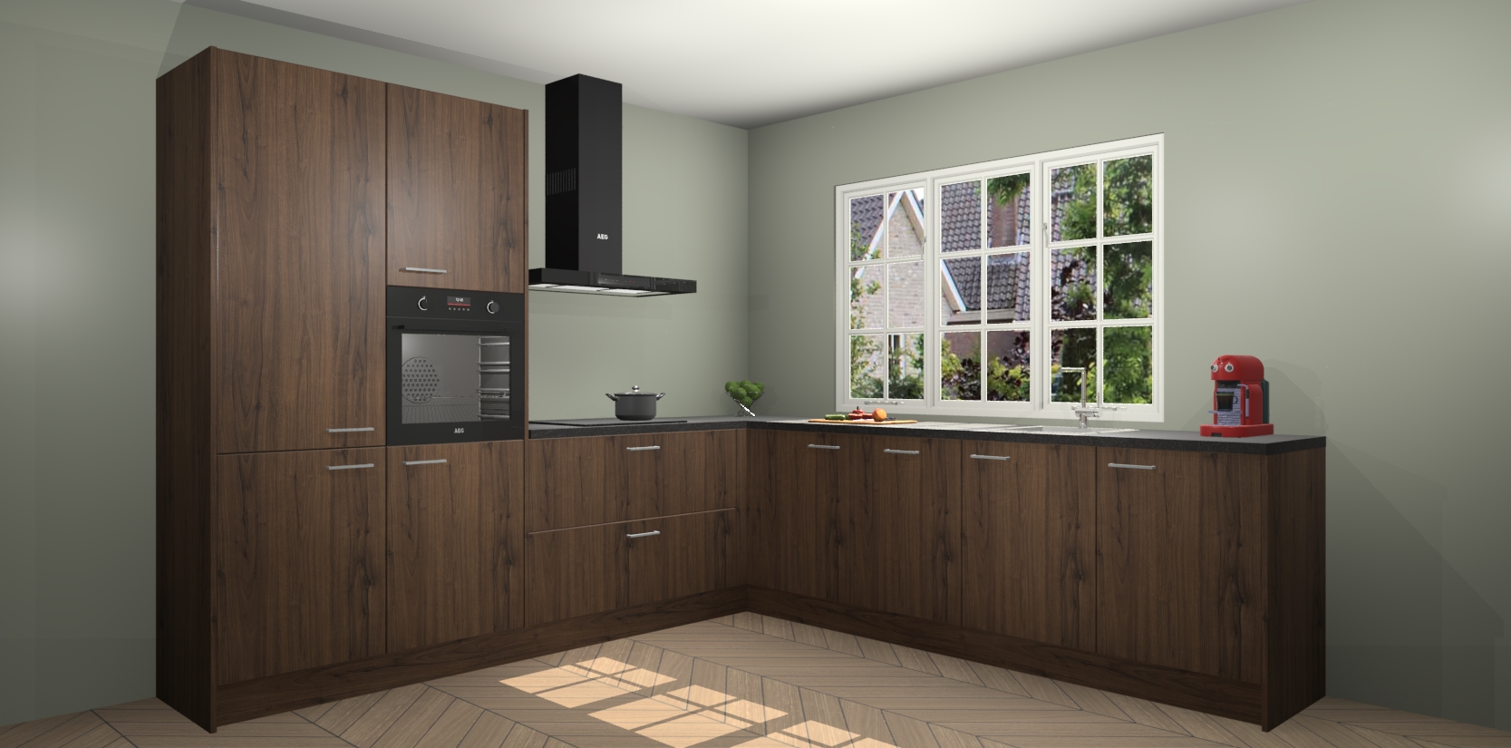 Welkom in de nieuwe wereld van een moderne keuken: de Noten keuken Casablanca! Met dit innovatieve keukendesign haalt u de natuur naar binnen. Neem plaats aan uw hout-look keuken en voel u verbonden met de prachtige Noten kleur. Zeer gebruiksvriendelijk, ervaring door prettige materialen en kleur die perfect aansluiten bij uw sfeerkeuze in huis.