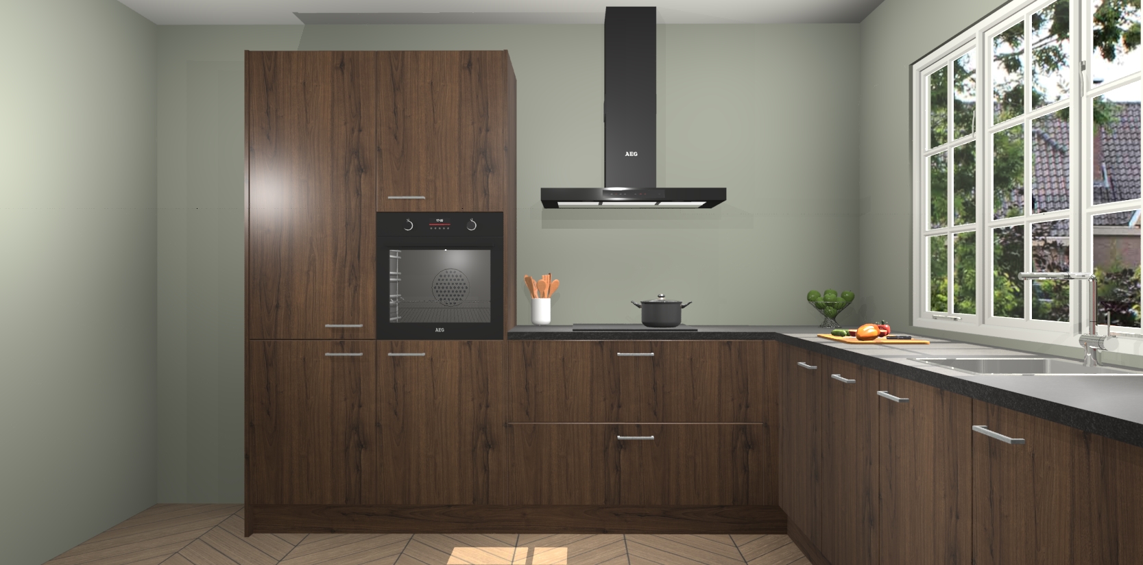 De keuken heeft veel opbergruimte, waardoor u alle ingrediënten gemakkelijk bereikbaar hebt staan. En daarnaast bevat deze volledig uitgeruste keuken ook 5 ingebouwde apparaten: een oven, inductiekookplaat, afzuigkap, vaatwasser en koelkast. Deze zijn heel eenvoudig na bestellen te upgraden naar AEG als u dit wilt. Bovendien zijn de softclose-kastdeuren ideaal; geef ze gewoon even een tikje en ze sluiten automatisch met geruisloze precisie.