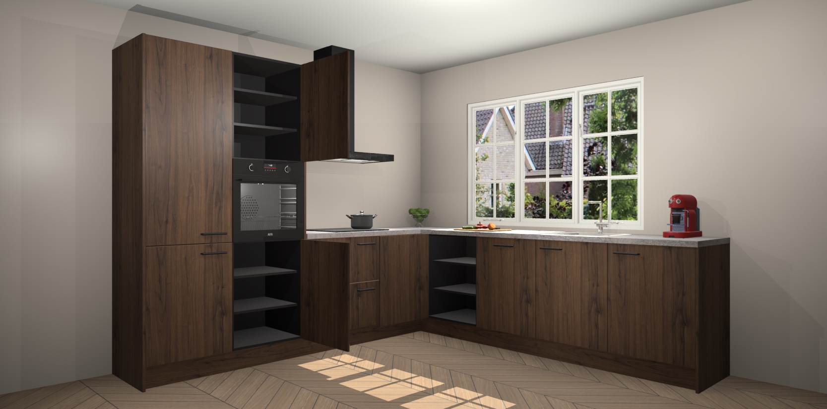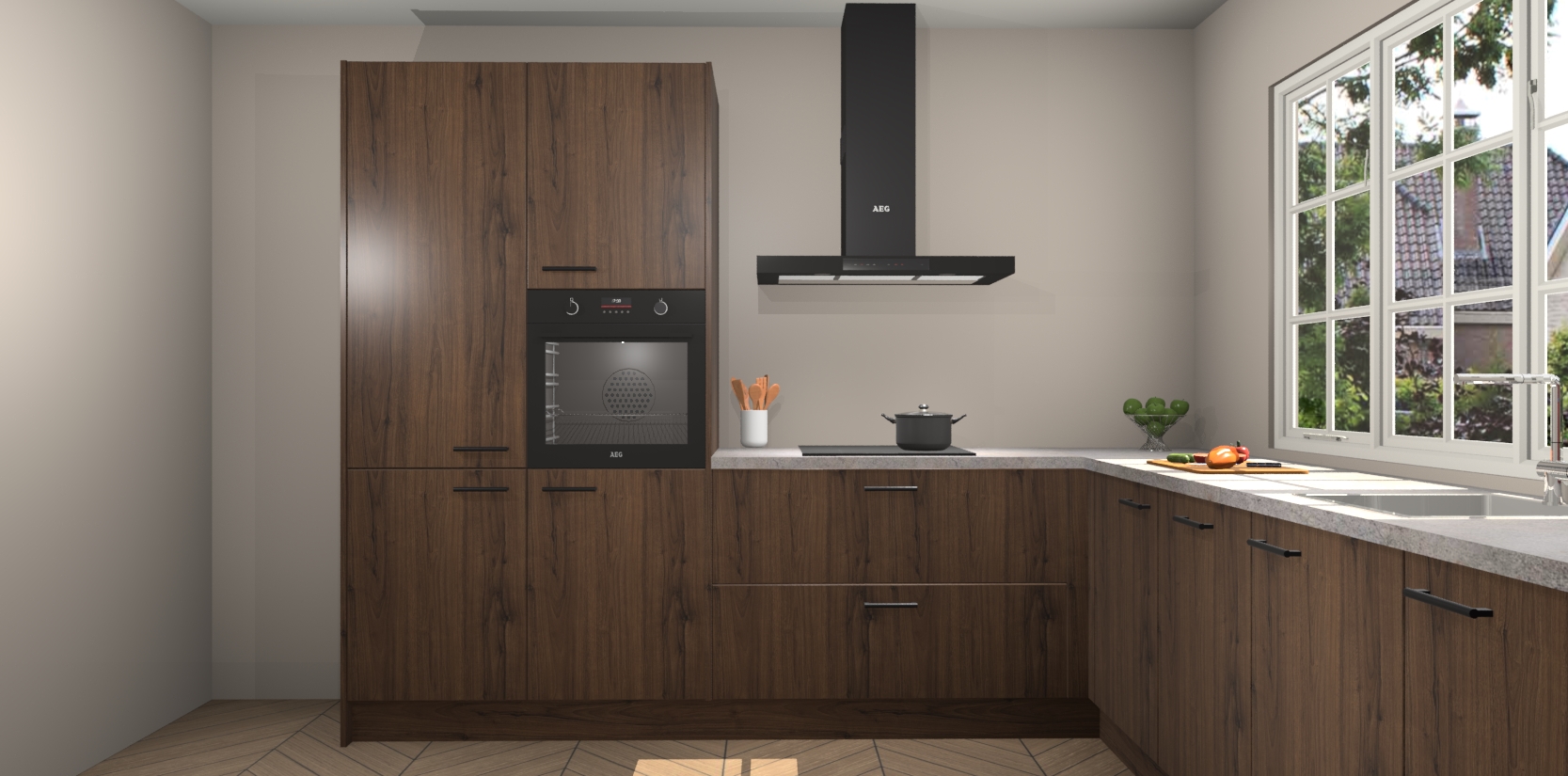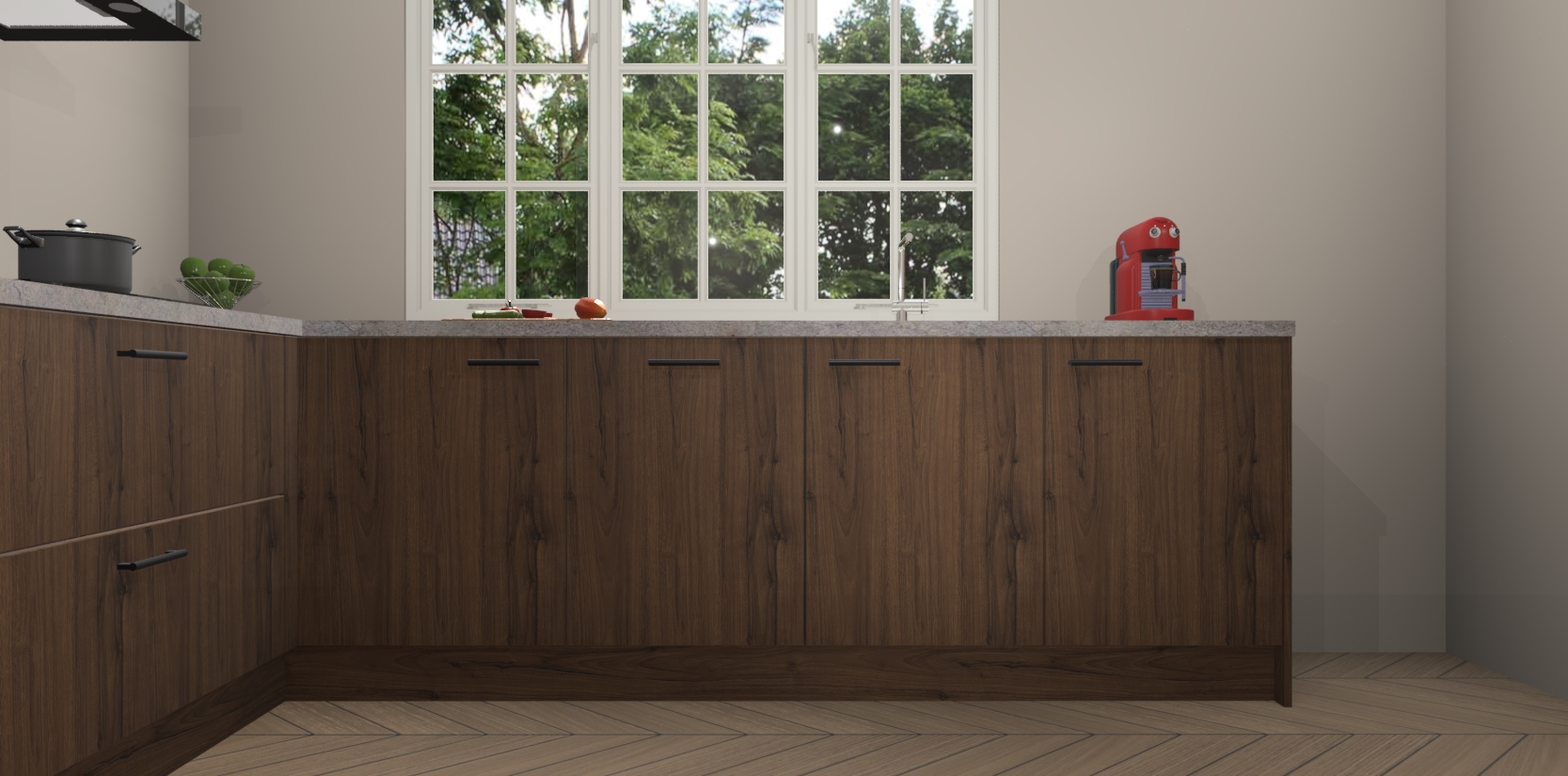 Welkom in de nieuwe wereld van een moderne keuken: de Noten keuken Casablanca! Met dit innovatieve keukendesign haalt u de natuur naar binnen. Neem plaats aan uw hout-look keuken en voel u verbonden met de prachtige Noten kleur. Zeer gebruiksvriendelijk, ervaring door prettige materialen en kleur die perfect aansluiten bij uw sfeerkeuze in huis.