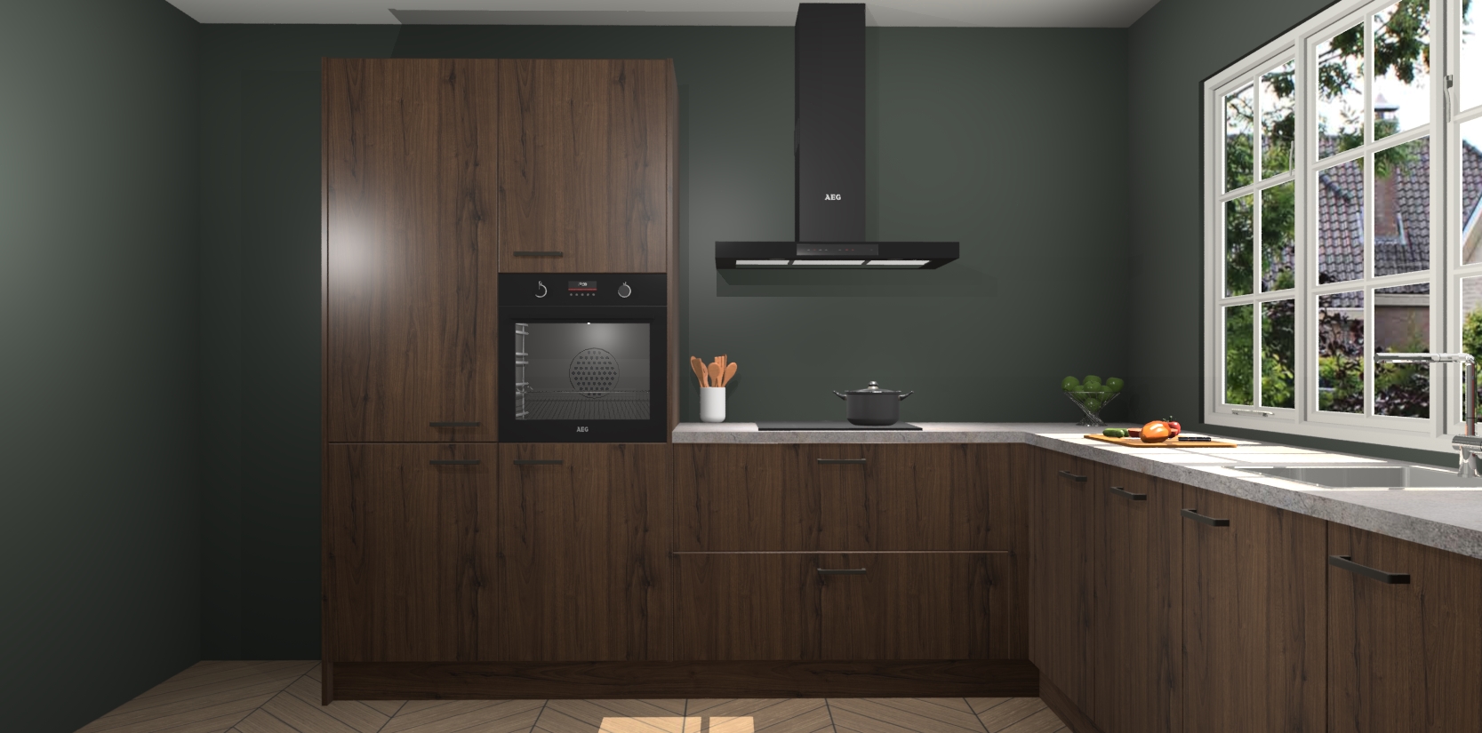 De keuken heeft veel opbergruimte, waardoor u alle ingrediënten gemakkelijk bereikbaar hebt staan. En daarnaast bevat deze volledig uitgeruste keuken ook 5 ingebouwde apparaten: een oven, inductiekookplaat, afzuigkap, vaatwasser en koelkast. Deze zijn heel eenvoudig na bestellen te upgraden naar AEG als u dit wilt. Bovendien zijn de softclose-kastdeuren ideaal; geef ze gewoon even een tikje en ze sluiten automatisch met geruisloze precisie.