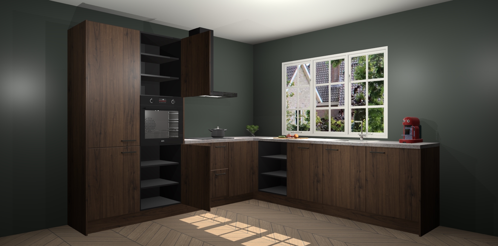 Welkom in de nieuwe wereld van een moderne keuken: de Noten keuken Casablanca! Met dit innovatieve keukendesign haalt u de natuur naar binnen. Neem plaats aan uw hout-look keuken en voel u verbonden met de prachtige Noten kleur. Zeer gebruiksvriendelijk, ervaring door prettige materialen en kleur die perfect aansluiten bij uw sfeerkeuze in huis.