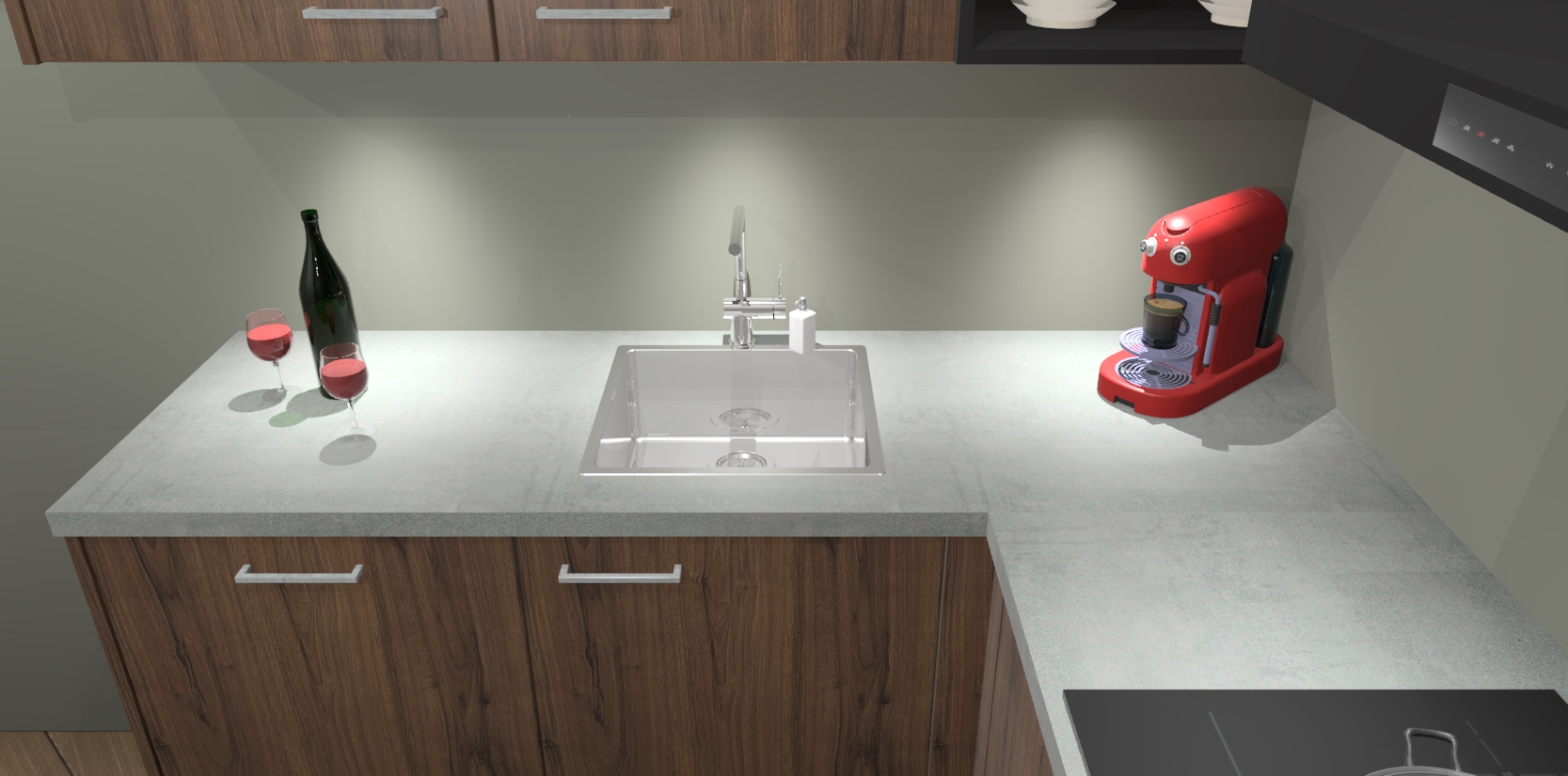 - Bij een hoekwerkblad zijn de hoeken in gevreesd en op maat gemaakt
