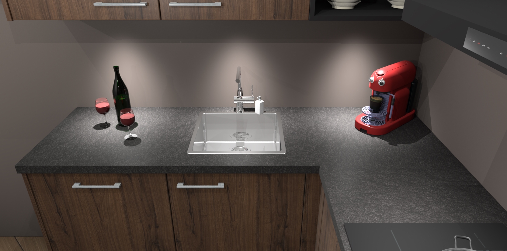 - Bij een hoekwerkblad zijn de hoeken in gevreesd en op maat gemaakt