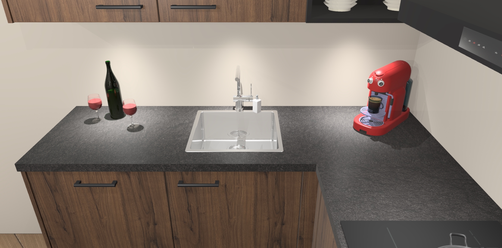 - Bij een hoekwerkblad zijn de hoeken in gevreesd en op maat gemaakt