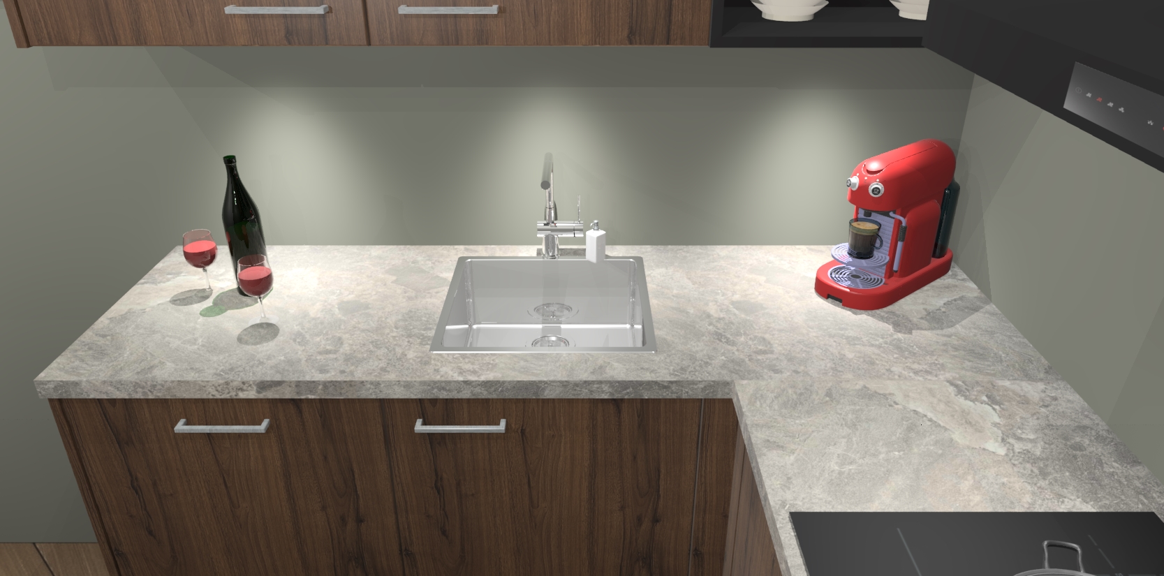 • Bij een hoekwerkblad zijn de hoeken in gevreesd en op maat gemaakt