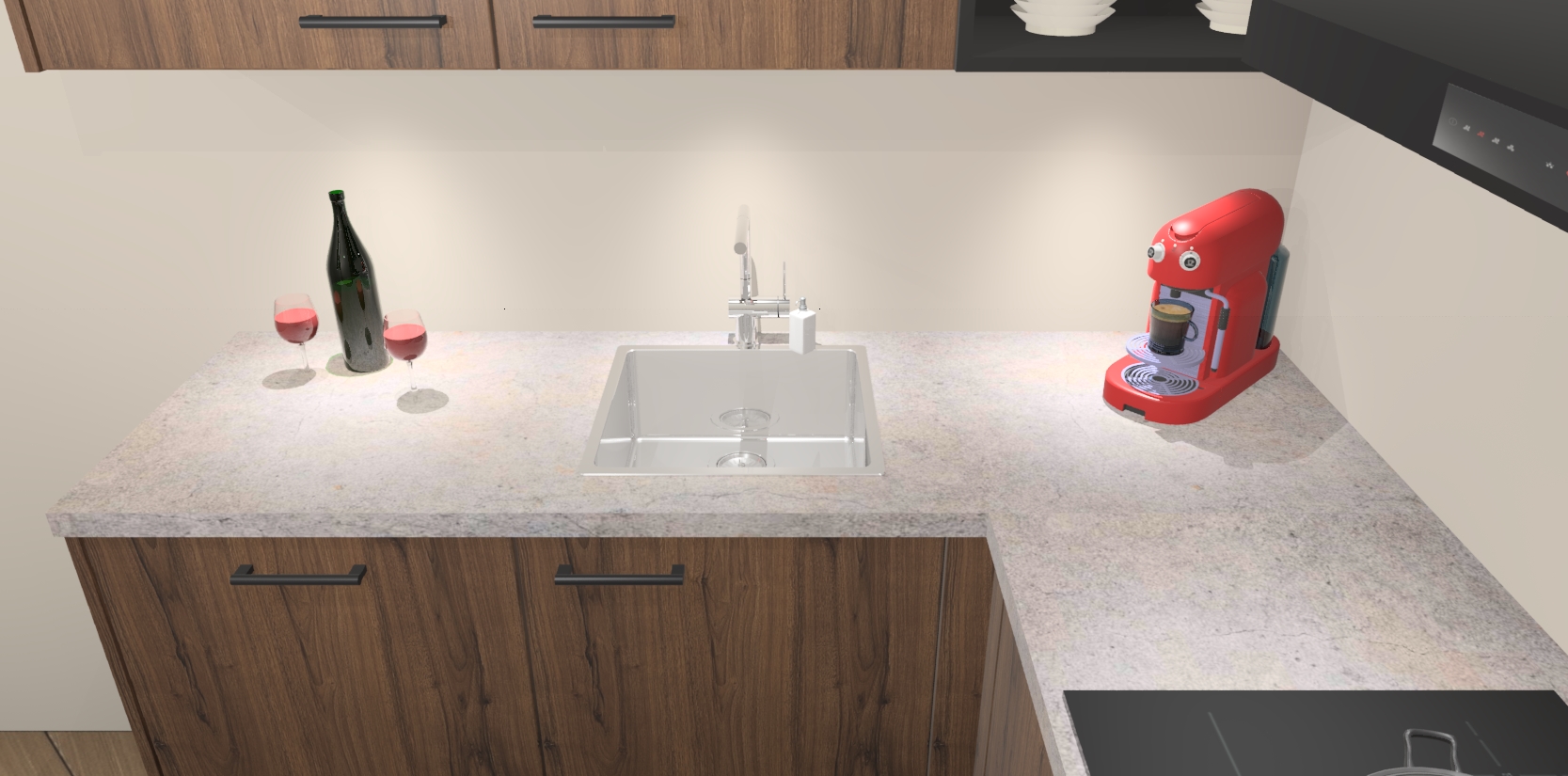 - Bij een hoekwerkblad zijn de hoeken in gevreesd en op maat gemaakt