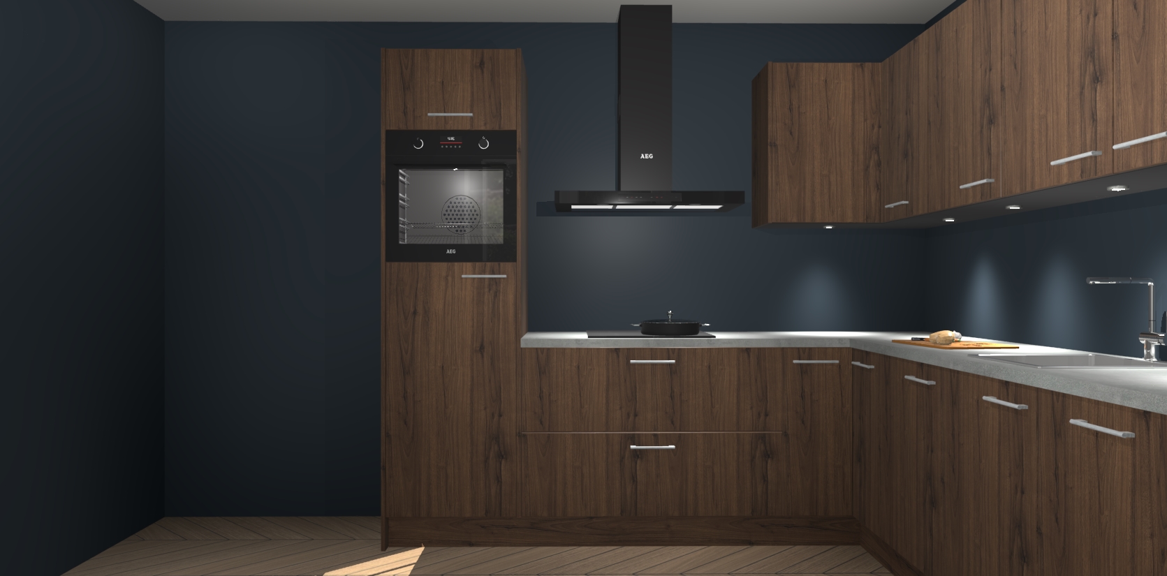 De Noten keuken Debar is uitgerust met vijf inbouwapparaten die elke kooktaak handig en efficiënt maken. Een oven, inductiekookplaat, afzuigkap, vaatwasser en koelkast zijn standaard, maar kunnen na bestelling eenvoudig worden geupgrade naar AEG. Profiteer vervolgens van de softclose deuren voor snelle toegang en geruisloze toegang.