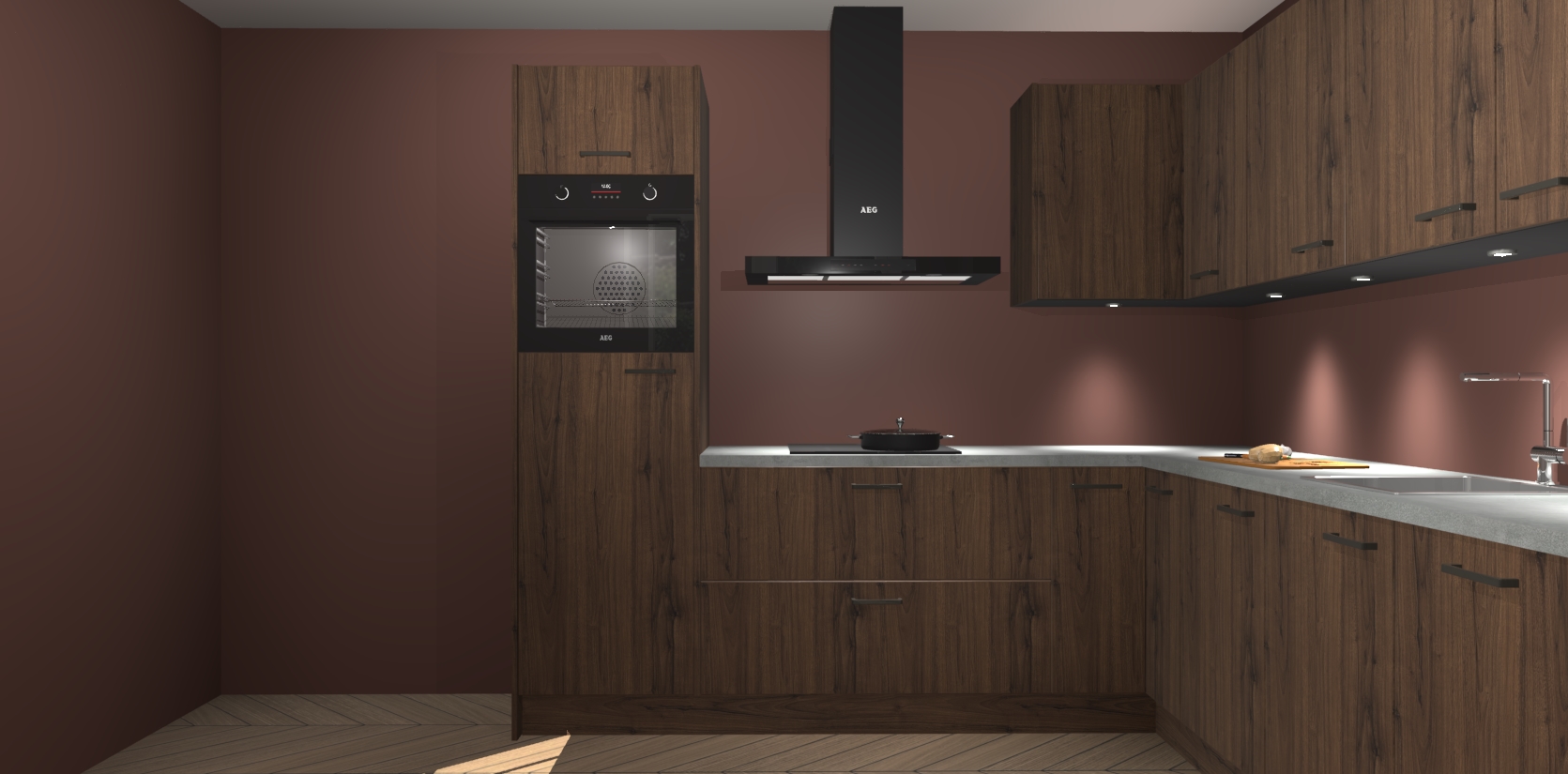 De Noten keuken Debar is uitgerust met vijf inbouwapparaten die elke kooktaak handig en efficiënt maken. Een oven, inductiekookplaat, afzuigkap, vaatwasser en koelkast zijn standaard, maar kunnen na bestelling eenvoudig worden geupgrade naar AEG. Profiteer vervolgens van de softclose deuren voor snelle toegang en geruisloze toegang.