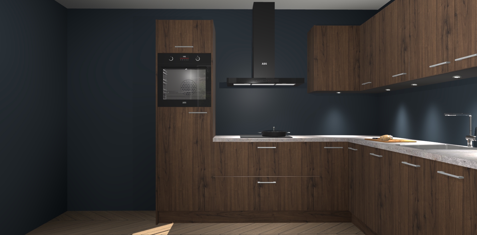 De Noten keuken Debar is uitgerust met vijf inbouwapparaten die elke kooktaak handig en efficiënt maken. Een oven, inductiekookplaat, afzuigkap, vaatwasser en koelkast zijn standaard, maar kunnen na bestelling eenvoudig worden geupgrade naar AEG. Profiteer vervolgens van de softclose deuren voor snelle toegang en geruisloze toegang.