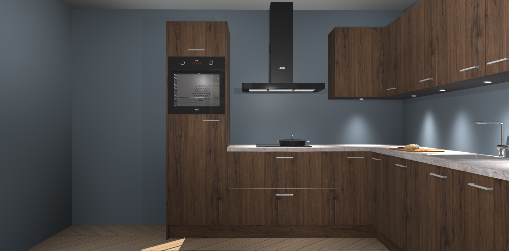 De Noten keuken Debar is uitgerust met vijf inbouwapparaten die elke kooktaak handig en efficiënt maken. Een oven, inductiekookplaat, afzuigkap, vaatwasser en koelkast zijn standaard, maar kunnen na bestelling eenvoudig worden geupgrade naar AEG. Profiteer vervolgens van de softclose deuren voor snelle toegang en geruisloze toegang.