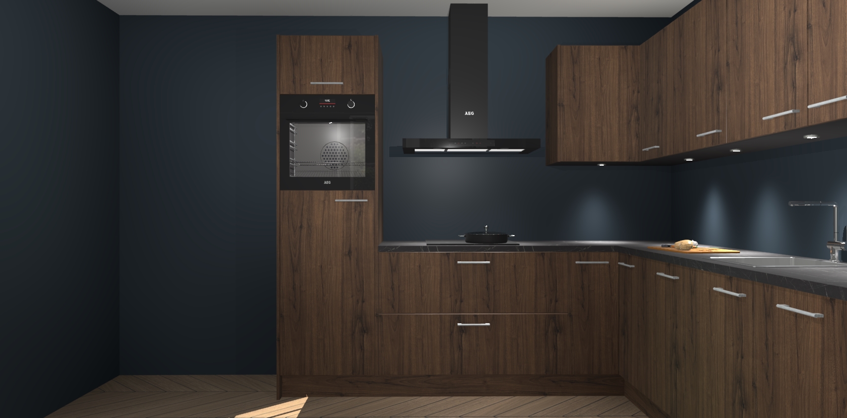 De Noten keuken Debar is uitgerust met vijf inbouwapparaten die elke kooktaak handig en efficiënt maken. Een oven, inductiekookplaat, afzuigkap, vaatwasser en koelkast zijn standaard, maar kunnen na bestelling eenvoudig worden geupgrade naar AEG. Profiteer vervolgens van de softclose deuren voor snelle toegang en geruisloze toegang.