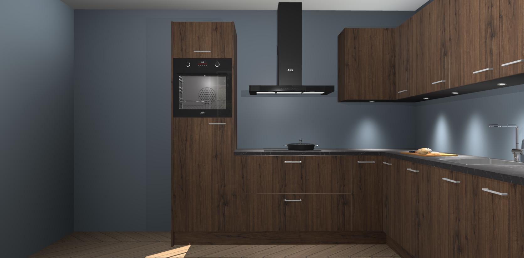 De Noten keuken Debar is uitgerust met vijf inbouwapparaten die elke kooktaak handig en efficiënt maken. Een oven, inductiekookplaat, afzuigkap, vaatwasser en koelkast zijn standaard, maar kunnen na bestelling eenvoudig worden geupgrade naar AEG. Profiteer vervolgens van de softclose deuren voor snelle toegang en geruisloze toegang.