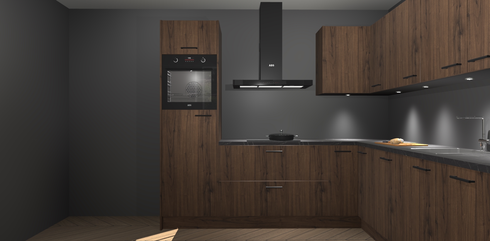 De Noten keuken Debar is uitgerust met vijf inbouwapparaten die elke kooktaak handig en efficiënt maken. Een oven, inductiekookplaat, afzuigkap, vaatwasser en koelkast zijn standaard, maar kunnen na bestelling eenvoudig worden geupgrade naar AEG. Profiteer vervolgens van de softclose deuren voor snelle toegang en geruisloze toegang.
