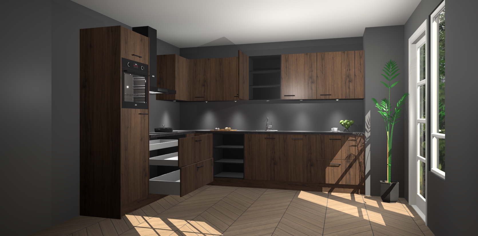 Als u op zoek bent naar de perfecte keuken om uw huis mee op te fleuren, zoek dan niet verder dan de Noten keuken Debar. Deze prachtige hoekkeuken straalt warmte en luxe uit met een modern maar geraffineerd design. Maak u nooit meer zorgen of u wel genoeg opbergruimte heeft; dit meubel biedt voldoende opbergruimte om al uw keukenbenodigdheden binnen handbereik te houden.