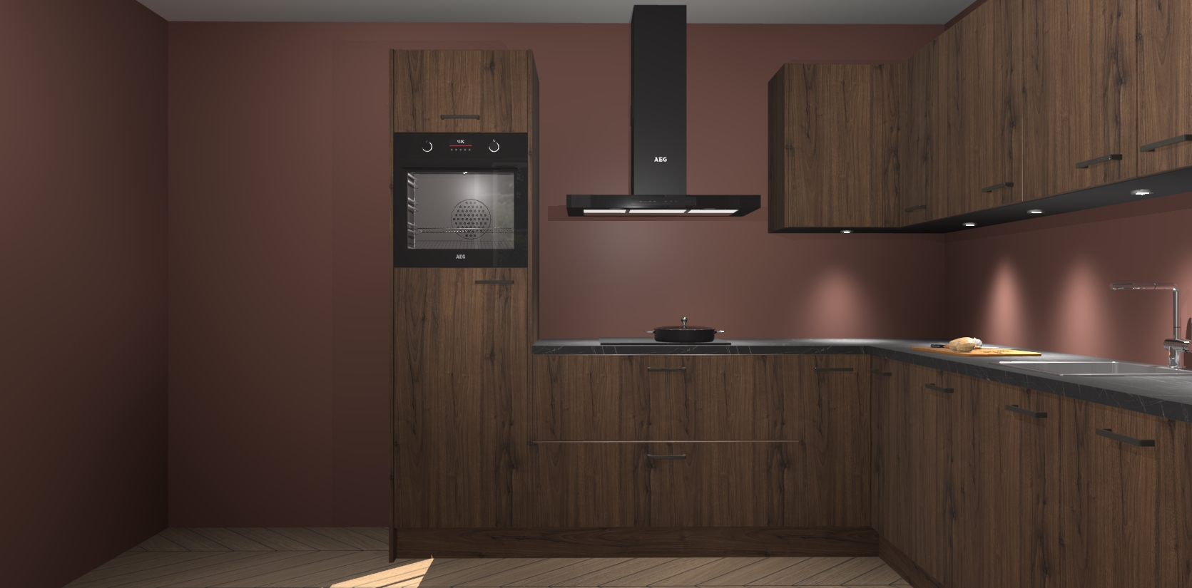 De Noten keuken Debar is uitgerust met vijf inbouwapparaten die elke kooktaak handig en efficiënt maken. Een oven, inductiekookplaat, afzuigkap, vaatwasser en koelkast zijn standaard, maar kunnen na bestelling eenvoudig worden geupgrade naar AEG. Profiteer vervolgens van de softclose deuren voor snelle toegang en geruisloze toegang.