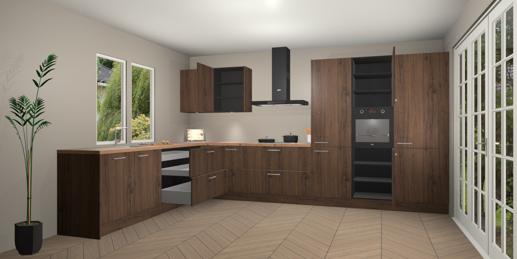 Heeft u nog apparatuur nodig? Geen probleem: de Noten keuken Debrecen bevat vijf ingebouwde apparaten - een oven, inductiekookplaat, afzuigkap, vaatwasser en koelkast - die gemakkelijk kunnen worden bijgewerkt naar AEG na bestelling. En als dat nog niet genoeg is; onze kasten worden pre-geassembleerd geleverd en zijn verkrijgbaar tegen een vastgeroeste lage prijs! U hoeft nooit meer te zoeken naar goede kwaliteit en service want onze producten hebben echt Duitse kwaliteit.
