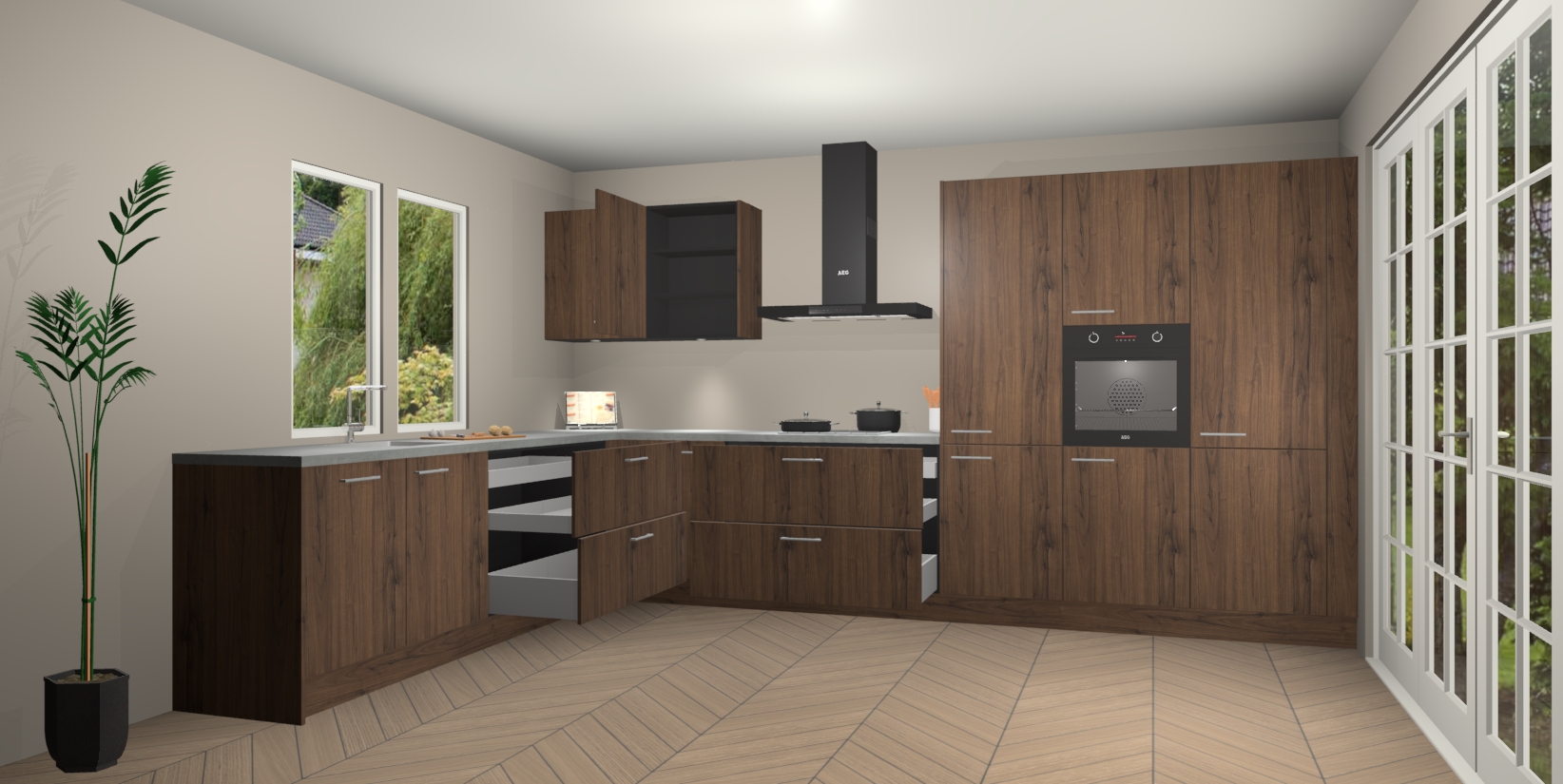 Heeft u nog apparatuur nodig? Geen probleem: de Noten keuken Debrecen bevat vijf ingebouwde apparaten - een oven, inductiekookplaat, afzuigkap, vaatwasser en koelkast - die gemakkelijk kunnen worden bijgewerkt naar AEG na bestelling. En als dat nog niet genoeg is; onze kasten worden pre-geassembleerd geleverd en zijn verkrijgbaar tegen een vastgeroeste lage prijs! U hoeft nooit meer te zoeken naar goede kwaliteit en service want onze producten hebben echt Duitse kwaliteit.