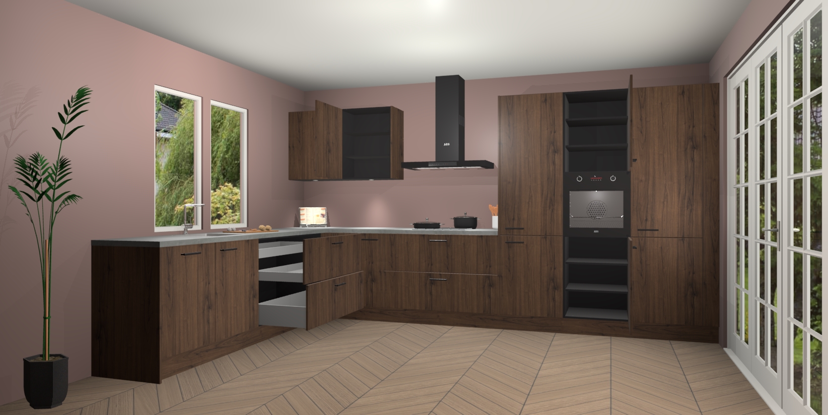 Kom dichtbij de perfecte keuken van uw dromen met de Noten keuken Debrecen. Met een prachtige houtlook en eigentijds ontwerp, straalt deze keuken warmte en sfeer uit. Of u nu liefhebber bent van traditionele of moderne stijlen, er is genoeg ruimte om aan al uw behoeften te voldoen.