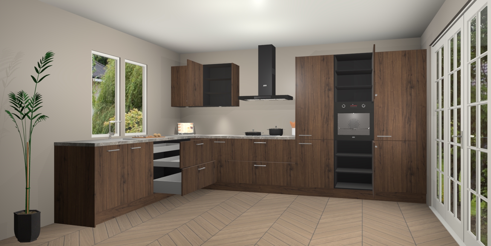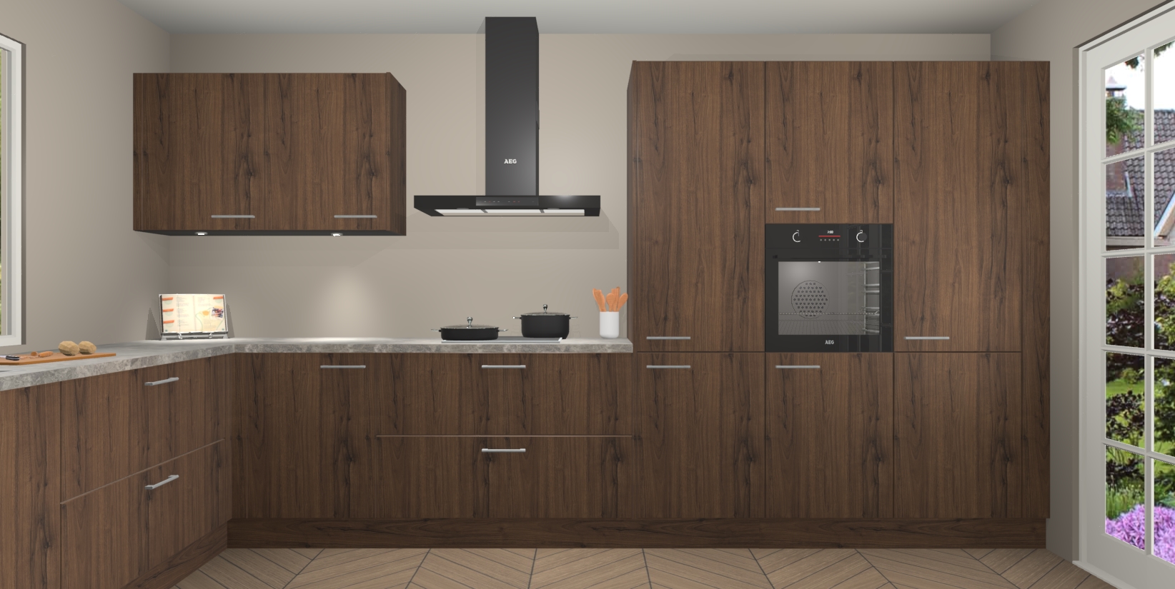 Kom dichtbij de perfecte keuken van uw dromen met de Noten keuken Debrecen. Met een prachtige houtlook en eigentijds ontwerp, straalt deze keuken warmte en sfeer uit. Of u nu liefhebber bent van traditionele of moderne stijlen, er is genoeg ruimte om aan al uw behoeften te voldoen.