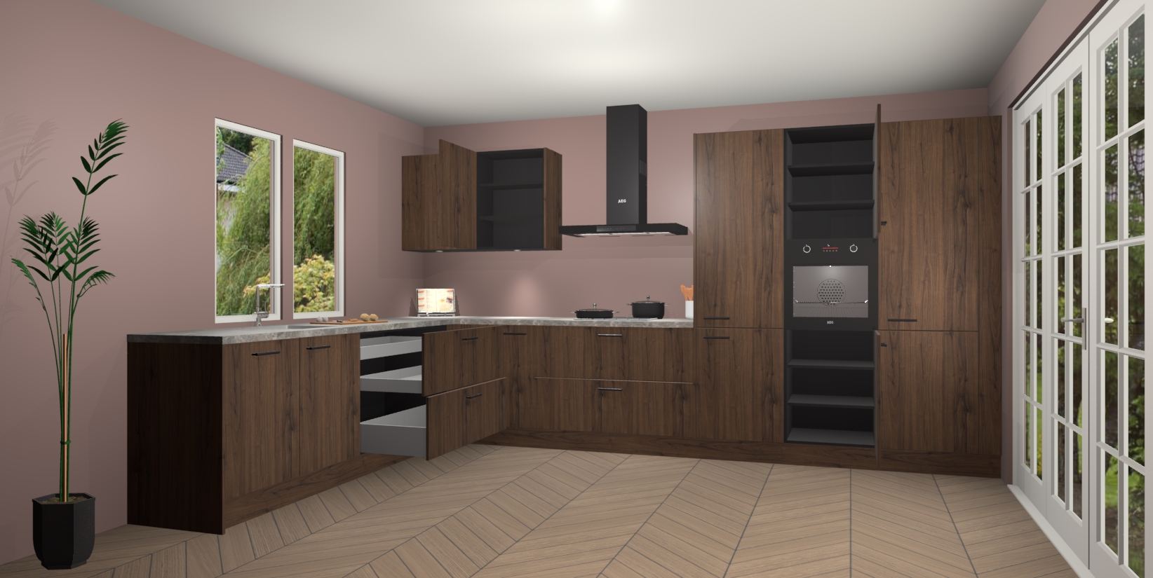 Heeft u nog apparatuur nodig? Geen probleem: de Noten keuken Debrecen bevat vijf ingebouwde apparaten - een oven, inductiekookplaat, afzuigkap, vaatwasser en koelkast - die gemakkelijk kunnen worden bijgewerkt naar AEG na bestelling. En als dat nog niet genoeg is; onze kasten worden pre-geassembleerd geleverd en zijn verkrijgbaar tegen een vastgeroeste lage prijs! U hoeft nooit meer te zoeken naar goede kwaliteit en service want onze producten hebben echt Duitse kwaliteit.