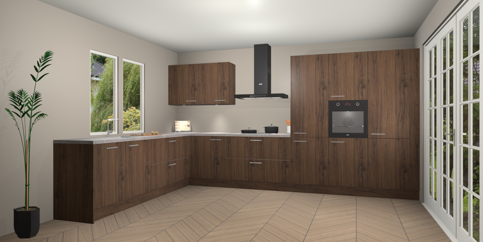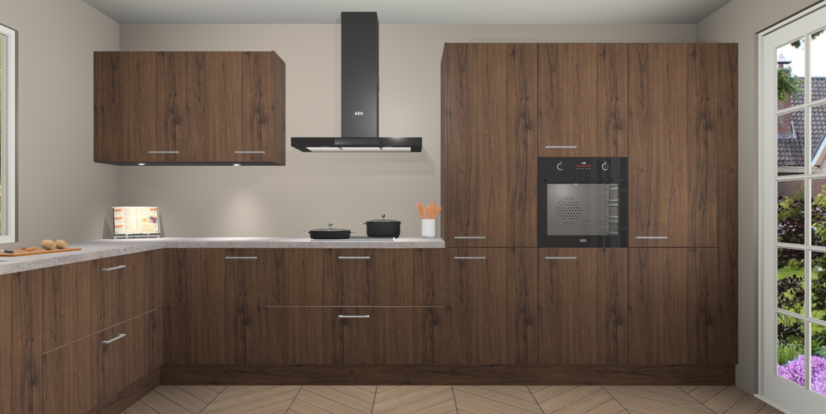 Kom dichtbij de perfecte keuken van uw dromen met de Noten keuken Debrecen. Met een prachtige houtlook en eigentijds ontwerp, straalt deze keuken warmte en sfeer uit. Of u nu liefhebber bent van traditionele of moderne stijlen, er is genoeg ruimte om aan al uw behoeften te voldoen.