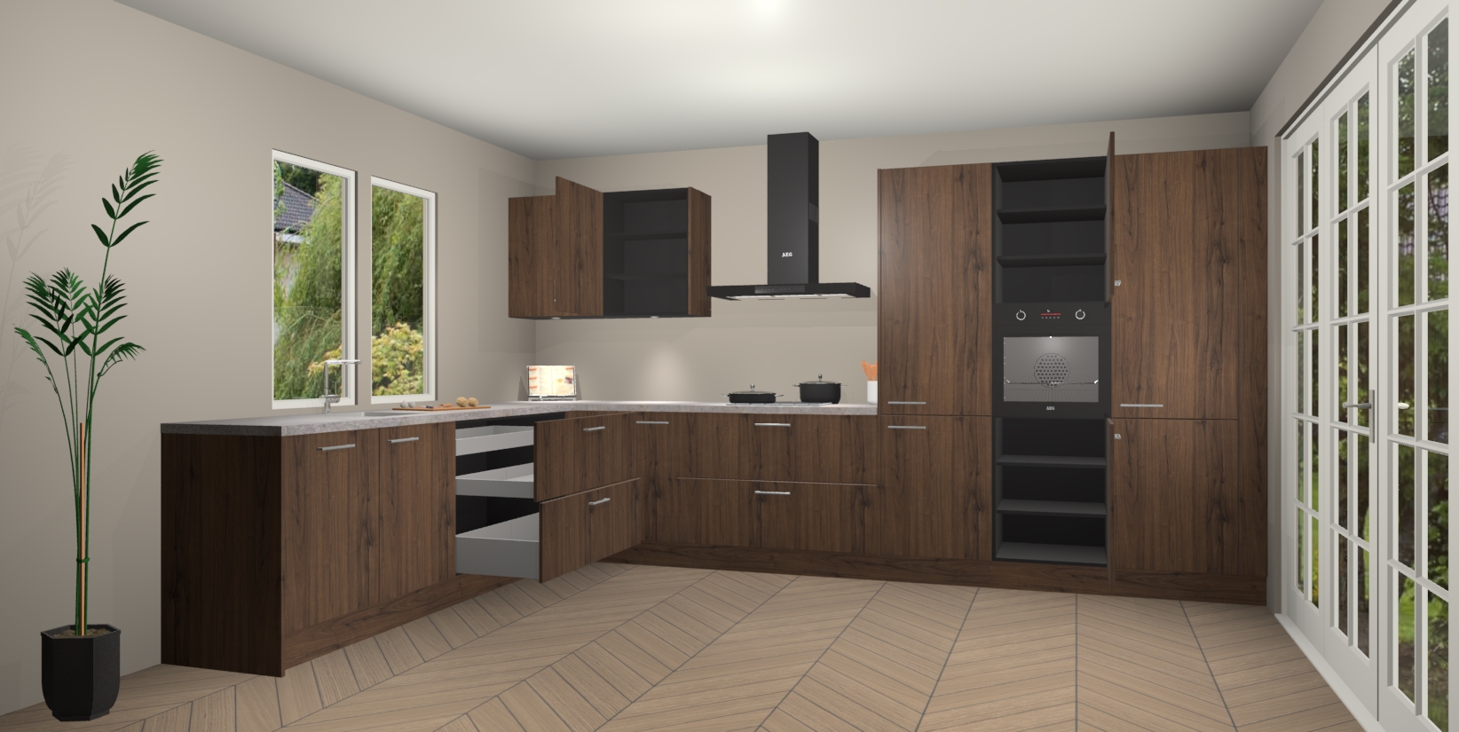 Heeft u nog apparatuur nodig? Geen probleem: de Noten keuken Debrecen bevat vijf ingebouwde apparaten - een oven, inductiekookplaat, afzuigkap, vaatwasser en koelkast - die gemakkelijk kunnen worden bijgewerkt naar AEG na bestelling. En als dat nog niet genoeg is; onze kasten worden pre-geassembleerd geleverd en zijn verkrijgbaar tegen een vastgeroeste lage prijs! U hoeft nooit meer te zoeken naar goede kwaliteit en service want onze producten hebben echt Duitse kwaliteit.