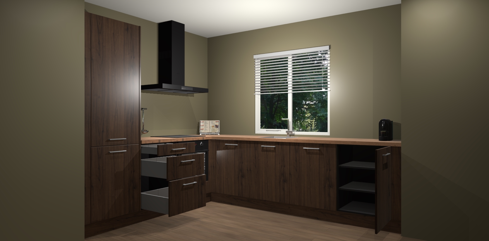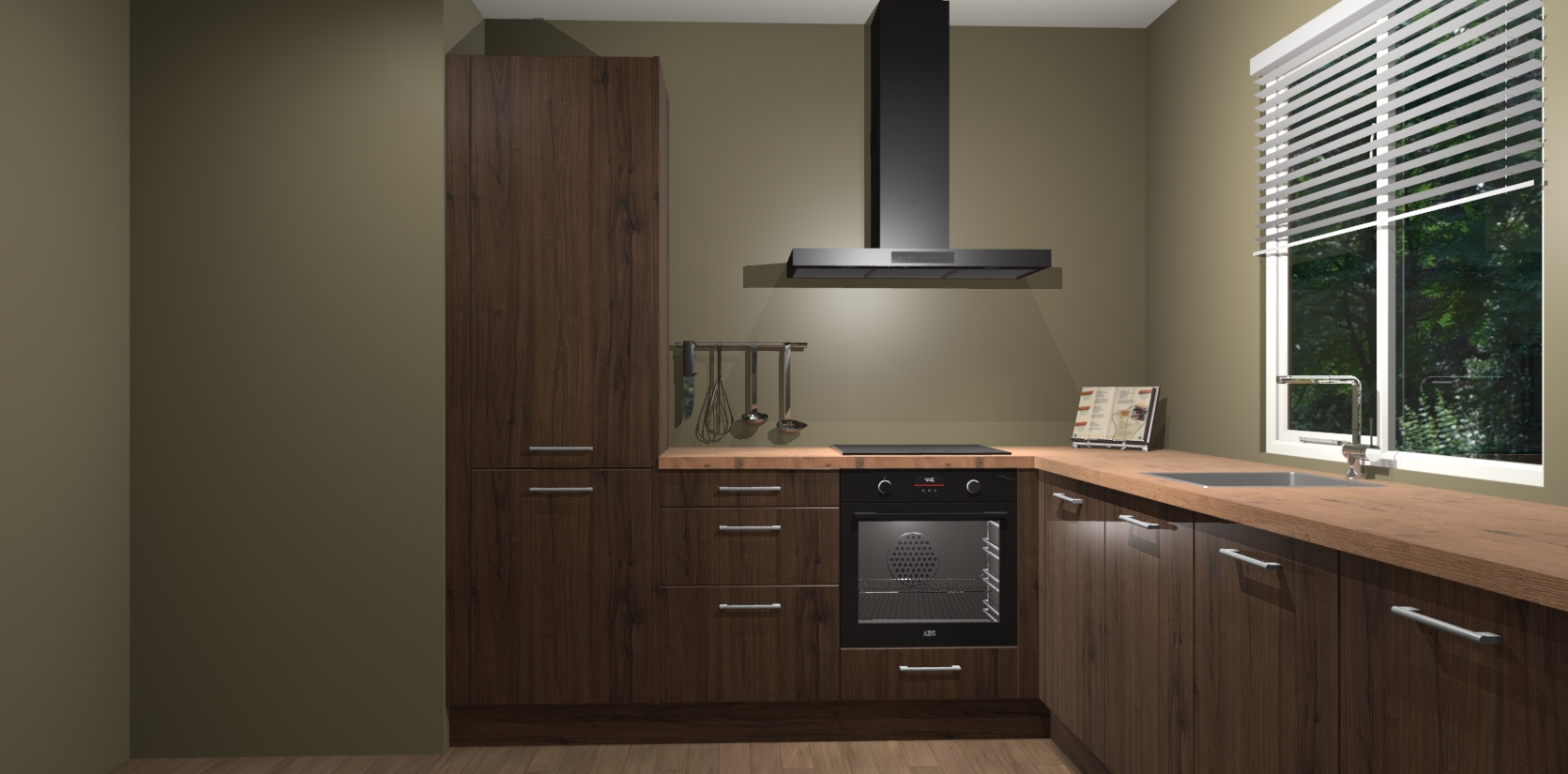 Maak kennis met de Noten keuken Doha - de perfecte aanvulling voor uw moderne keuken! Ervaar tijdloos design, elegantie en een chique uitstraling met onze zwarte handgrepen, soft-close deuren en veel opbergruimte. Dit alles wordt aangeboden tegen een vaste lage prijs voor ongeëvenaarde Duitse keukenkwaliteit!