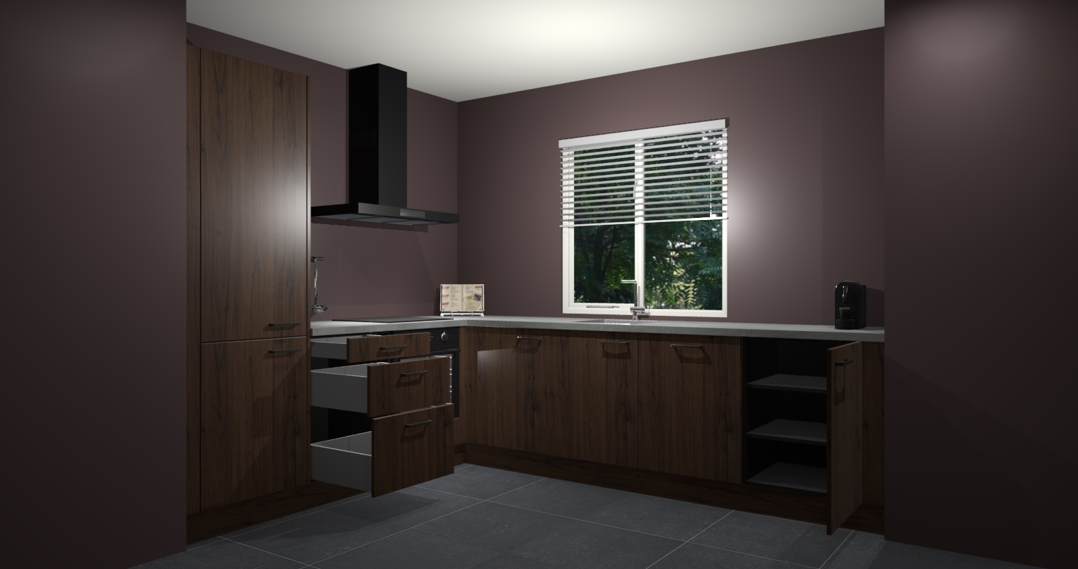 Maak kennis met de Noten keuken Doha - de perfecte aanvulling voor uw moderne keuken! Ervaar tijdloos design, elegantie en een chique uitstraling met onze zwarte handgrepen, soft-close deuren en veel opbergruimte. Dit alles wordt aangeboden tegen een vaste lage prijs voor ongeëvenaarde Duitse keukenkwaliteit!