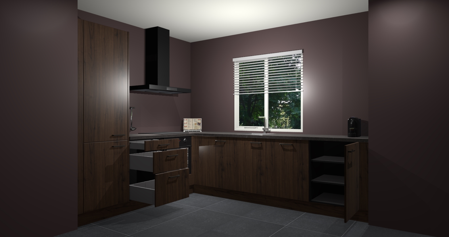 Maak kennis met de Noten keuken Doha - de perfecte aanvulling voor uw moderne keuken! Ervaar tijdloos design, elegantie en een chique uitstraling met onze zwarte handgrepen, soft-close deuren en veel opbergruimte. Dit alles wordt aangeboden tegen een vaste lage prijs voor ongeëvenaarde Duitse keukenkwaliteit!