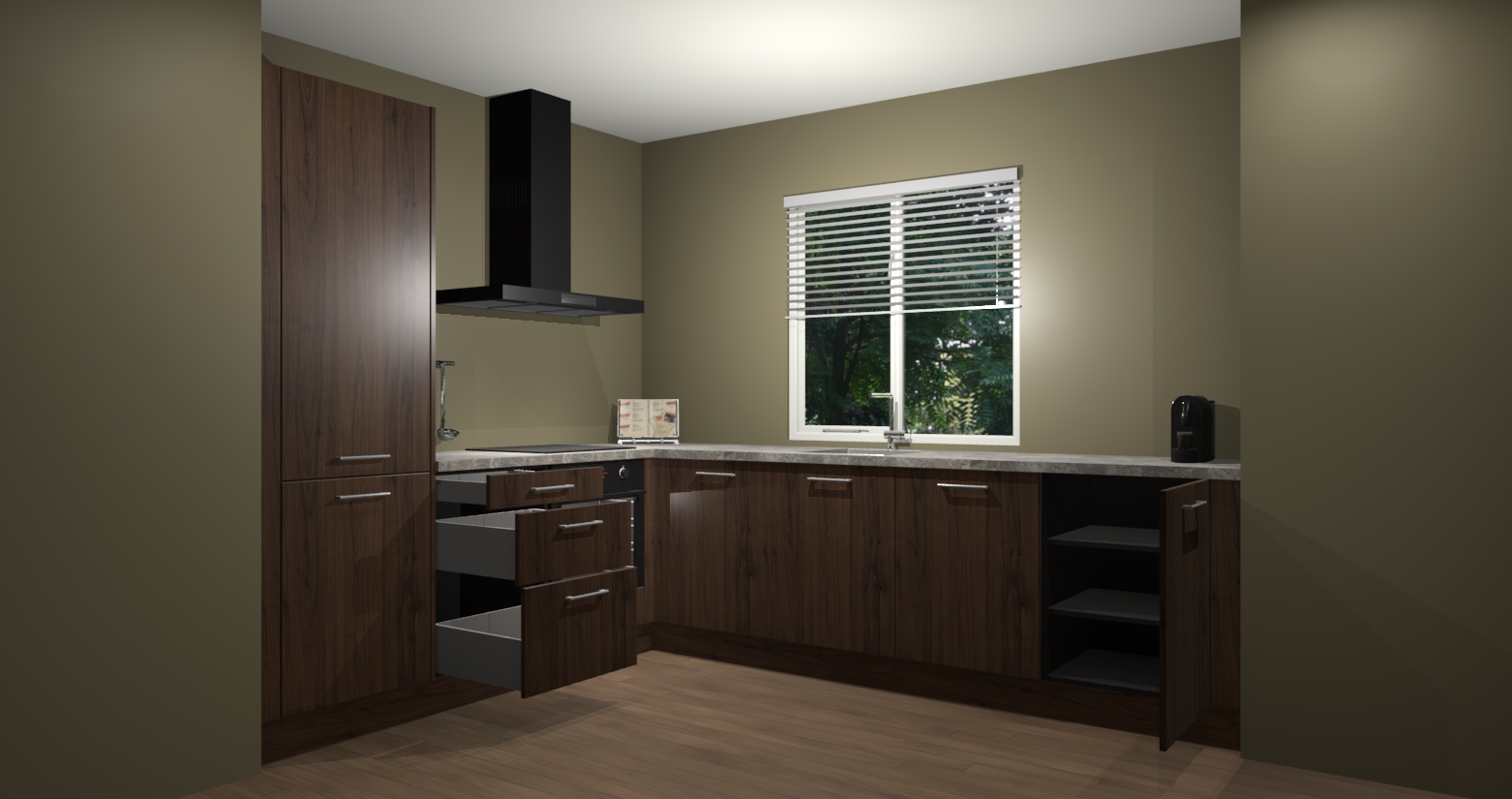 Maak kennis met de Noten keuken Doha - de perfecte aanvulling voor uw moderne keuken! Ervaar tijdloos design, elegantie en een chique uitstraling met onze zwarte handgrepen, soft-close deuren en veel opbergruimte. Dit alles wordt aangeboden tegen een vaste lage prijs voor ongeëvenaarde Duitse keukenkwaliteit!