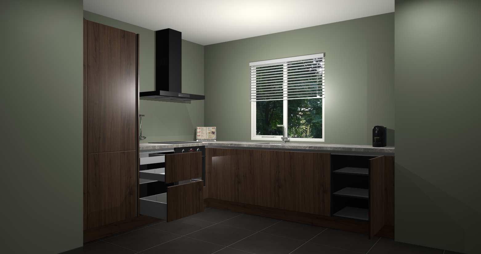 Maak kennis met de Noten keuken Doha - de perfecte aanvulling voor uw moderne keuken! Ervaar tijdloos design, elegantie en een chique uitstraling met onze zwarte handgrepen, soft-close deuren en veel opbergruimte. Dit alles wordt aangeboden tegen een vaste lage prijs voor ongeëvenaarde Duitse keukenkwaliteit!