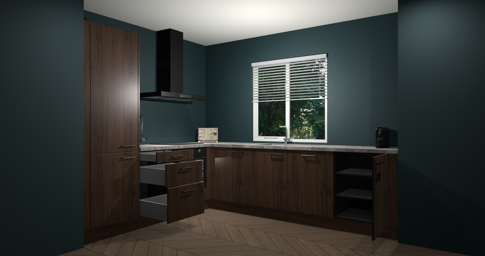 Maak kennis met de Noten keuken Doha - de perfecte aanvulling voor uw moderne keuken! Ervaar tijdloos design, elegantie en een chique uitstraling met onze zwarte handgrepen, soft-close deuren en veel opbergruimte. Dit alles wordt aangeboden tegen een vaste lage prijs voor ongeëvenaarde Duitse keukenkwaliteit!