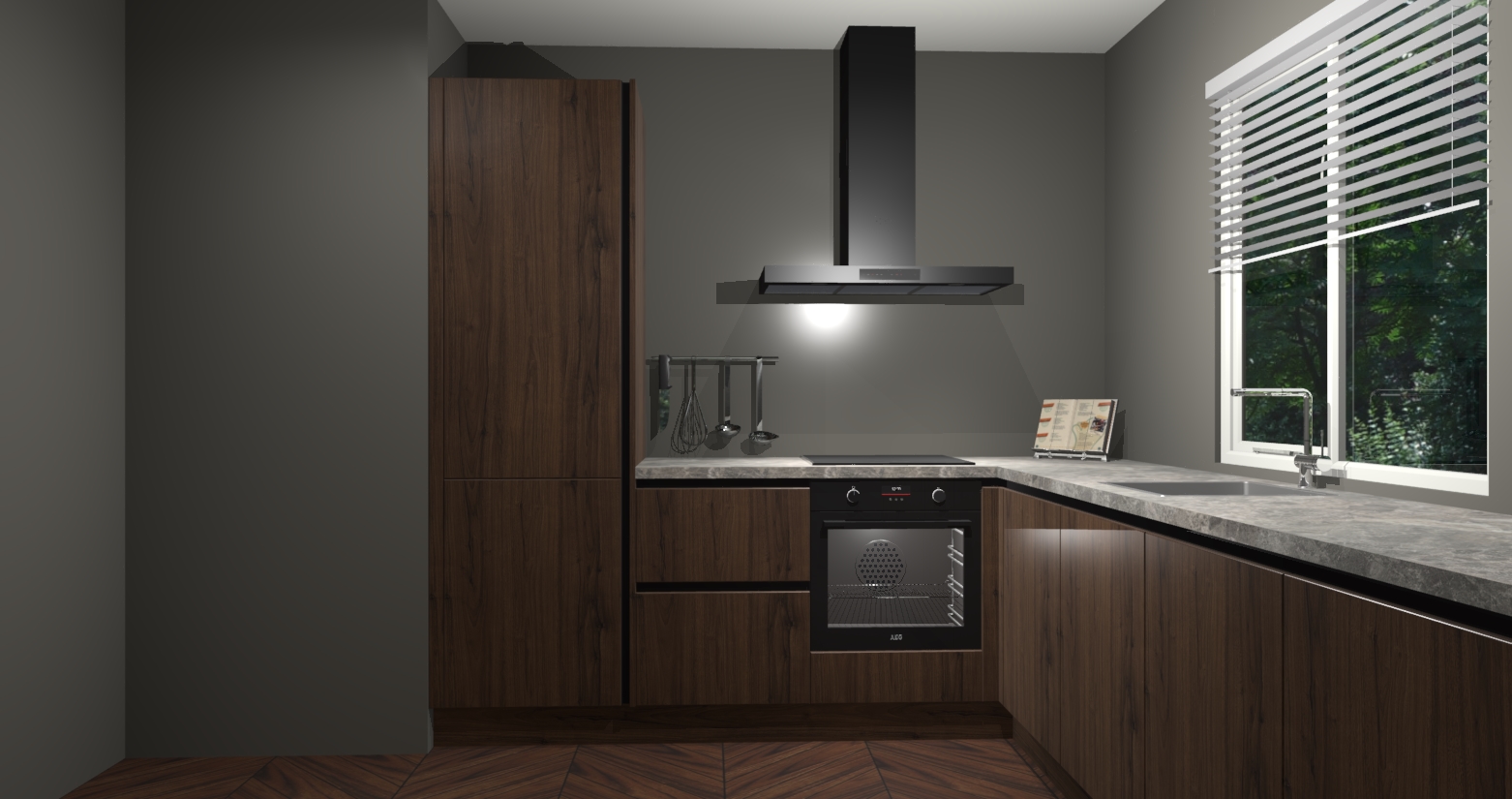 Maak kennis met de Noten keuken Doha - de perfecte aanvulling voor uw moderne keuken! Ervaar tijdloos design, elegantie en een chique uitstraling met onze zwarte handgrepen, soft-close deuren en veel opbergruimte. Dit alles wordt aangeboden tegen een vaste lage prijs voor ongeëvenaarde Duitse keukenkwaliteit!