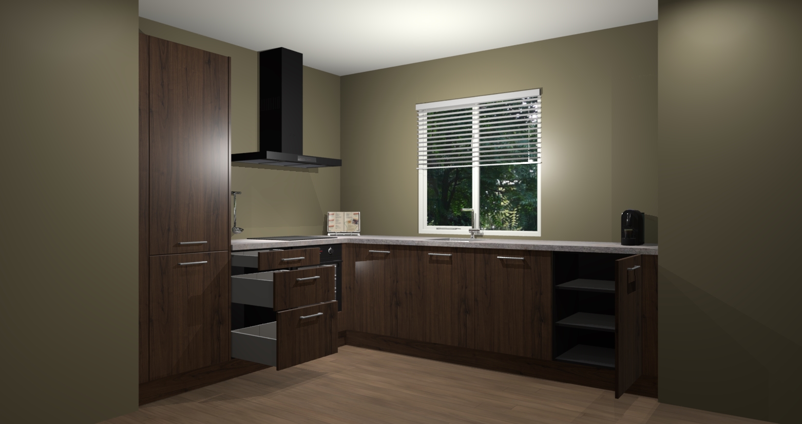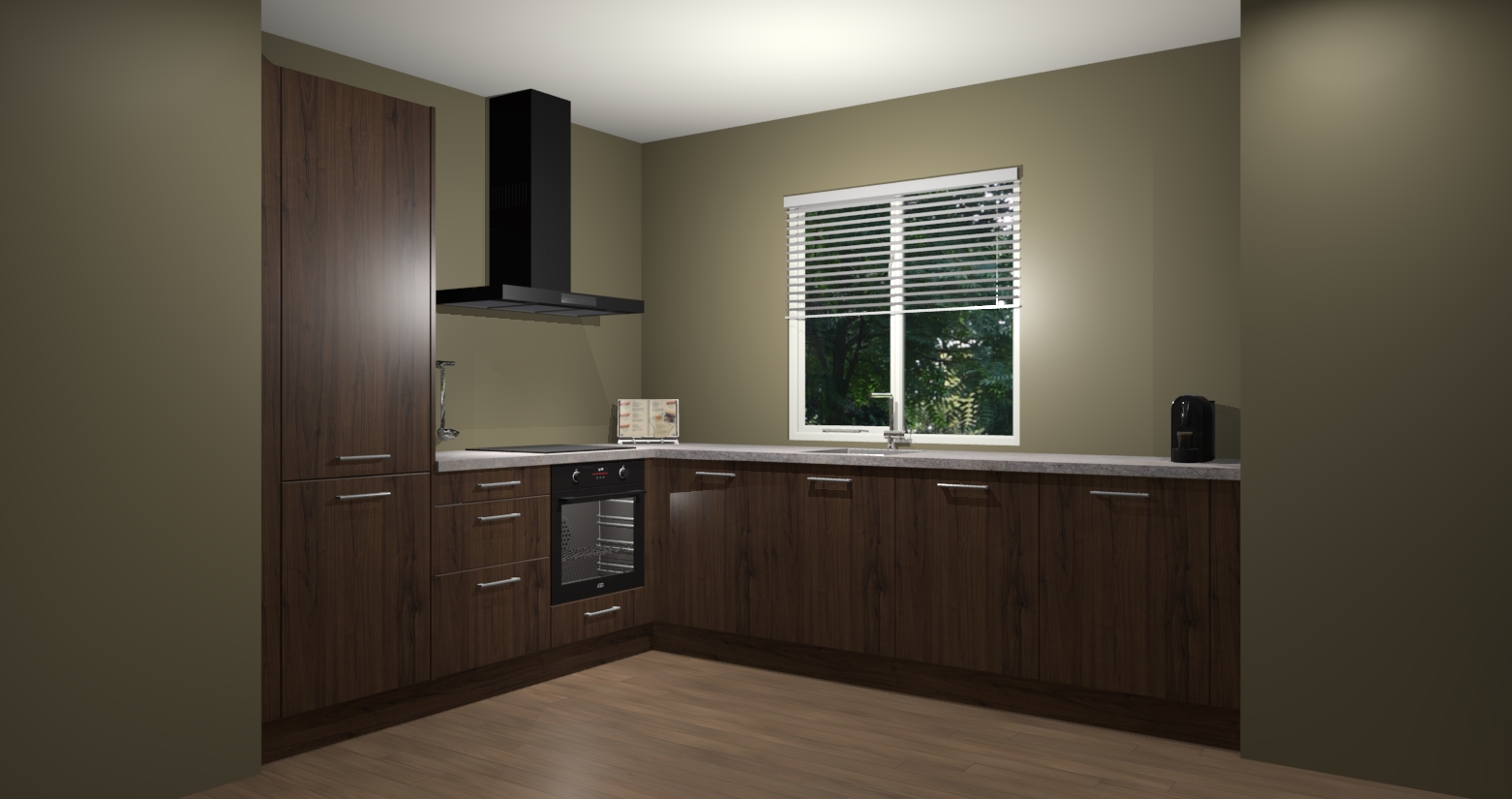 Maak kennis met de Noten keuken Doha - de perfecte aanvulling voor uw moderne keuken! Ervaar tijdloos design, elegantie en een chique uitstraling met onze zwarte handgrepen, soft-close deuren en veel opbergruimte. Dit alles wordt aangeboden tegen een vaste lage prijs voor ongeëvenaarde Duitse keukenkwaliteit!