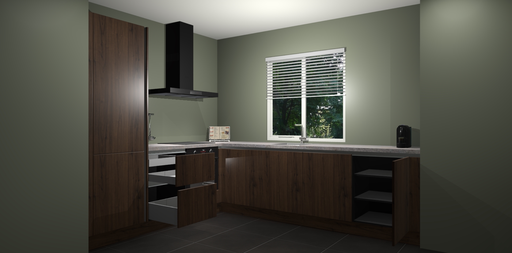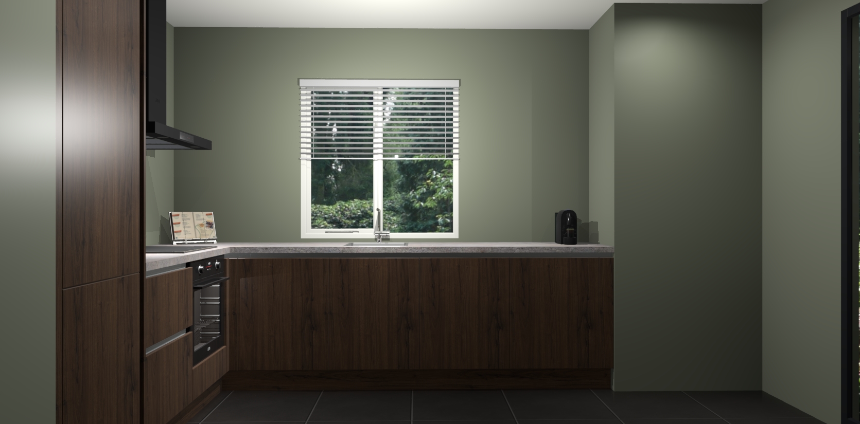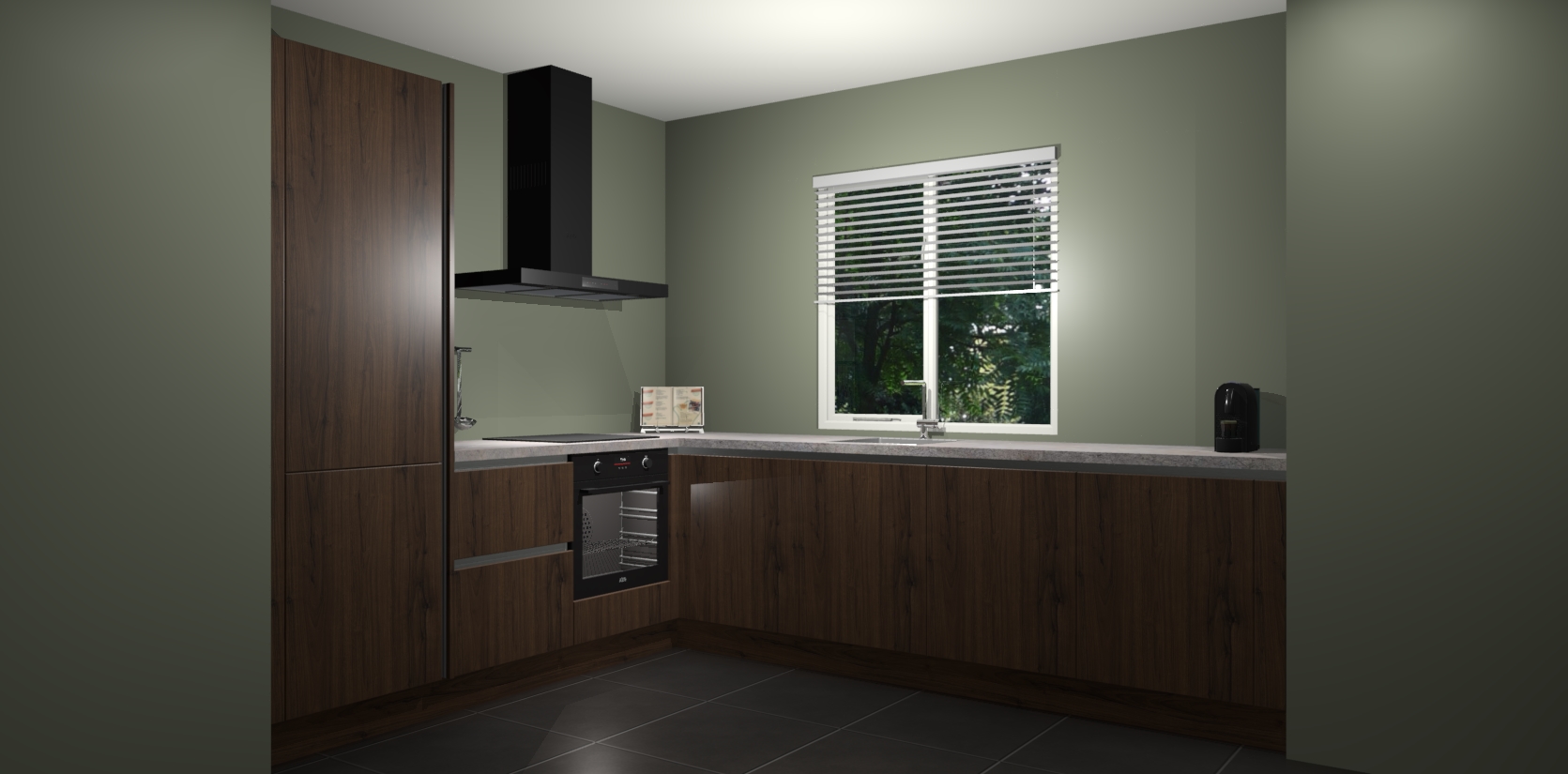 Maak kennis met de Noten keuken Doha - de perfecte aanvulling voor uw moderne keuken! Ervaar tijdloos design, elegantie en een chique uitstraling met onze zwarte handgrepen, soft-close deuren en veel opbergruimte. Dit alles wordt aangeboden tegen een vaste lage prijs voor ongeëvenaarde Duitse keukenkwaliteit!