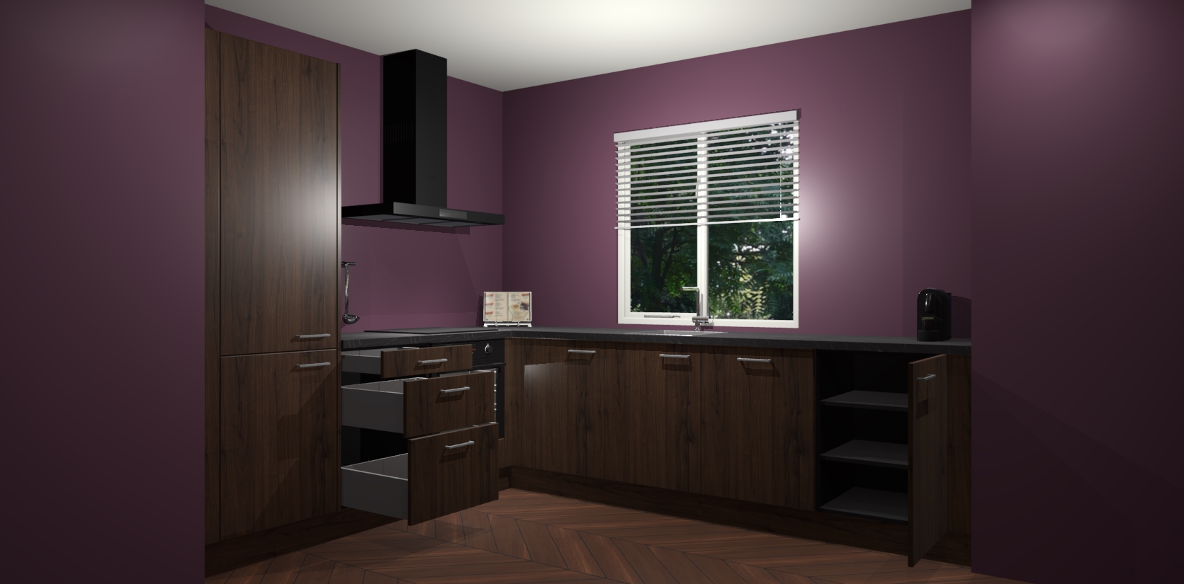 Maak kennis met de Noten keuken Doha - de perfecte aanvulling voor uw moderne keuken! Ervaar tijdloos design, elegantie en een chique uitstraling met onze zwarte handgrepen, soft-close deuren en veel opbergruimte. Dit alles wordt aangeboden tegen een vaste lage prijs voor ongeëvenaarde Duitse keukenkwaliteit!