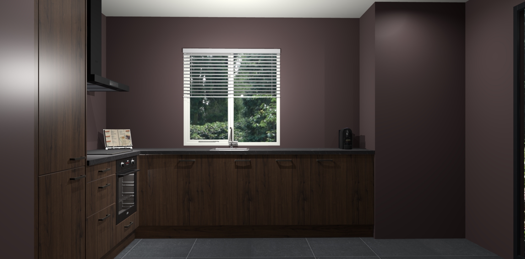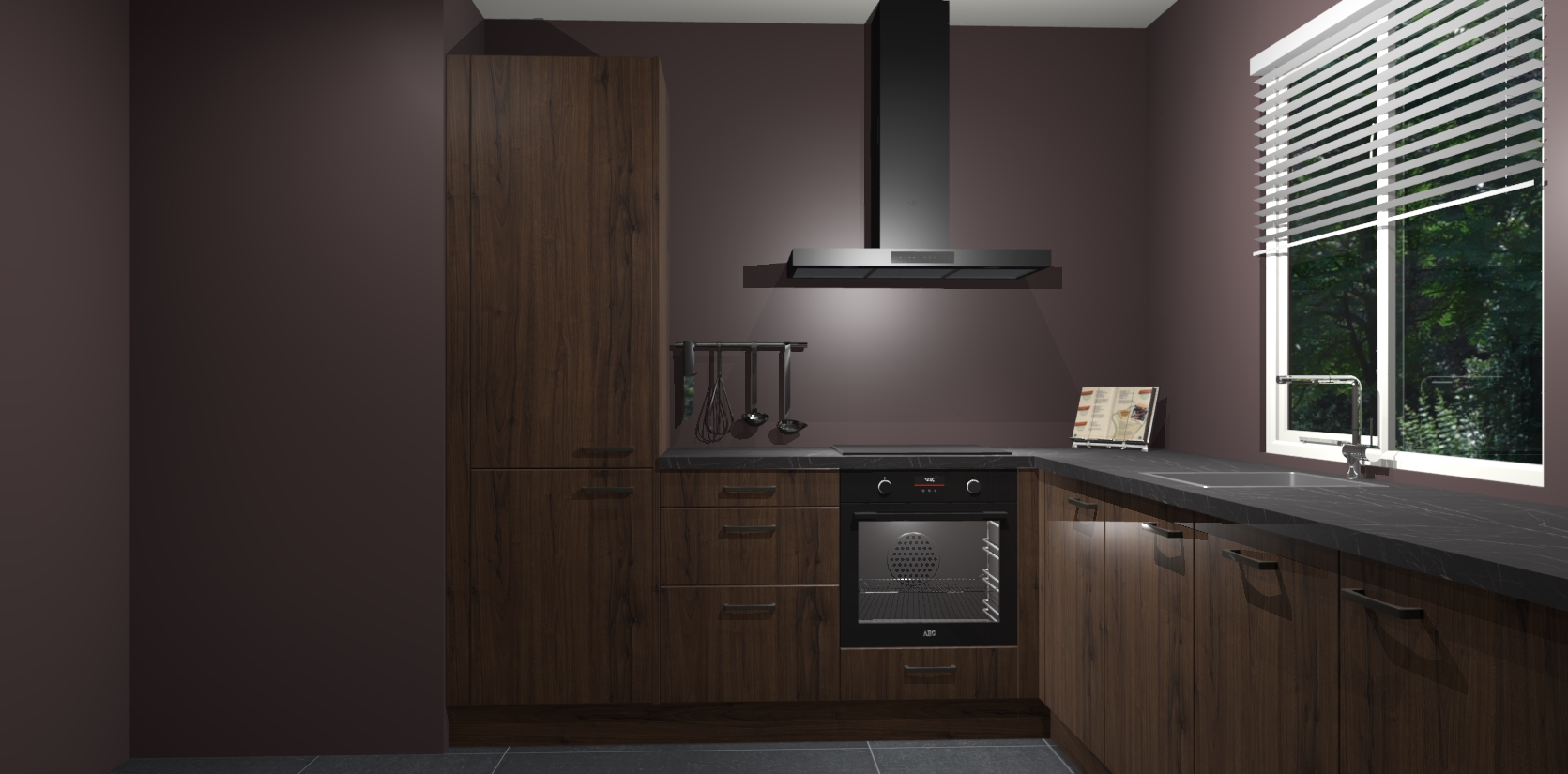 Maak kennis met de Noten keuken Doha - de perfecte aanvulling voor uw moderne keuken! Ervaar tijdloos design, elegantie en een chique uitstraling met onze zwarte handgrepen, soft-close deuren en veel opbergruimte. Dit alles wordt aangeboden tegen een vaste lage prijs voor ongeëvenaarde Duitse keukenkwaliteit!