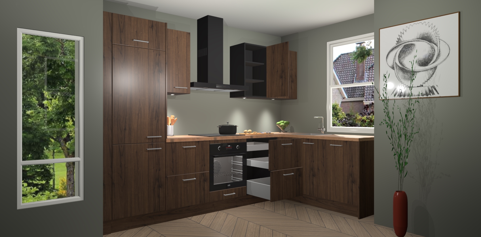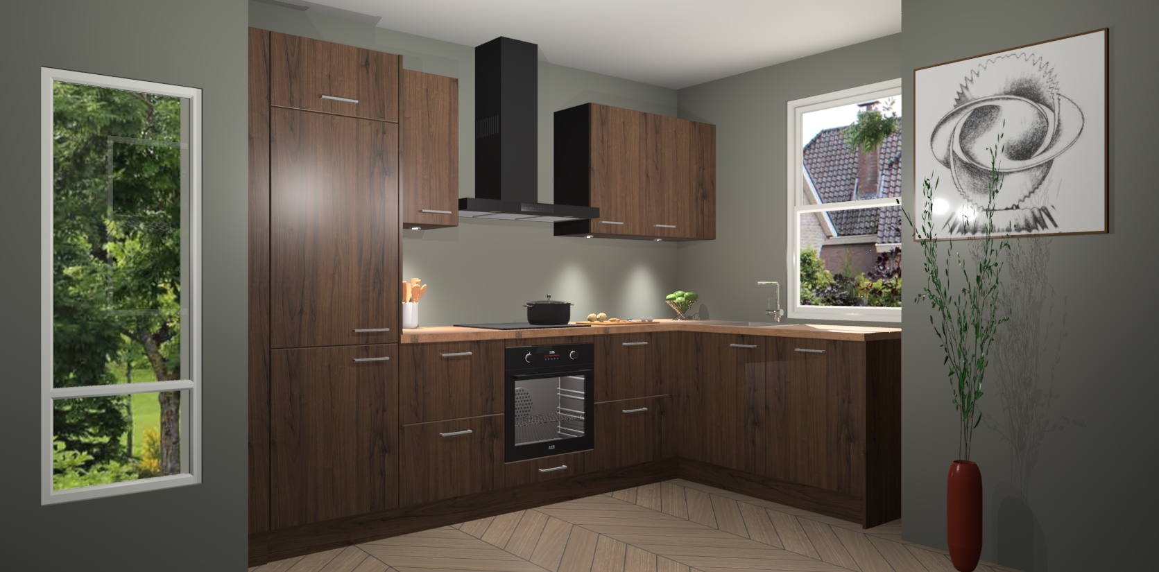 Bent u op zoek naar een moderne en tijdloze keuken die schoonheid in uw huis brengt? Zoek dan niet verder dan de Noten keuken Geneve - de perfecte keuken voor al uw wensen. Deze hoekkeuken biedt de hoogste Duitse kwaliteit voor een vaste lage prijs en is zeker een blikvanger in uw huis!