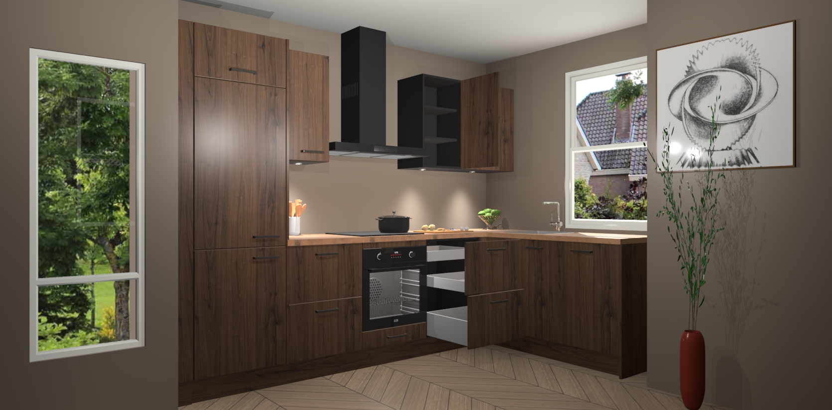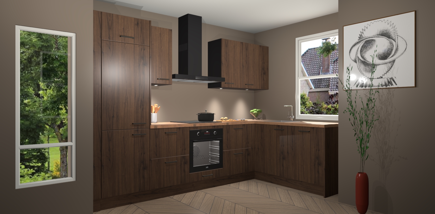 Bent u op zoek naar een moderne en tijdloze keuken die schoonheid in uw huis brengt? Zoek dan niet verder dan de Noten keuken Geneve - de perfecte keuken voor al uw wensen. Deze hoekkeuken biedt de hoogste Duitse kwaliteit voor een vaste lage prijs en is zeker een blikvanger in uw huis!